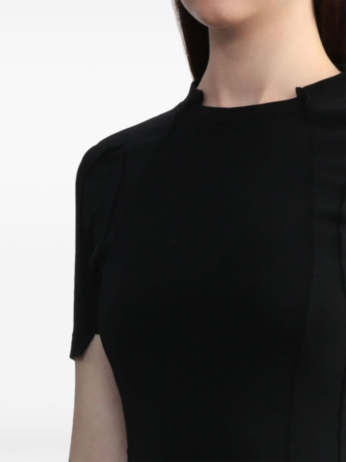 Черный, эластичный хлопок, эластичный материал, вырезы с необработанными крями, короткие рукава, воротник с вырезом, рукава с вырезами, вырезы на подоле