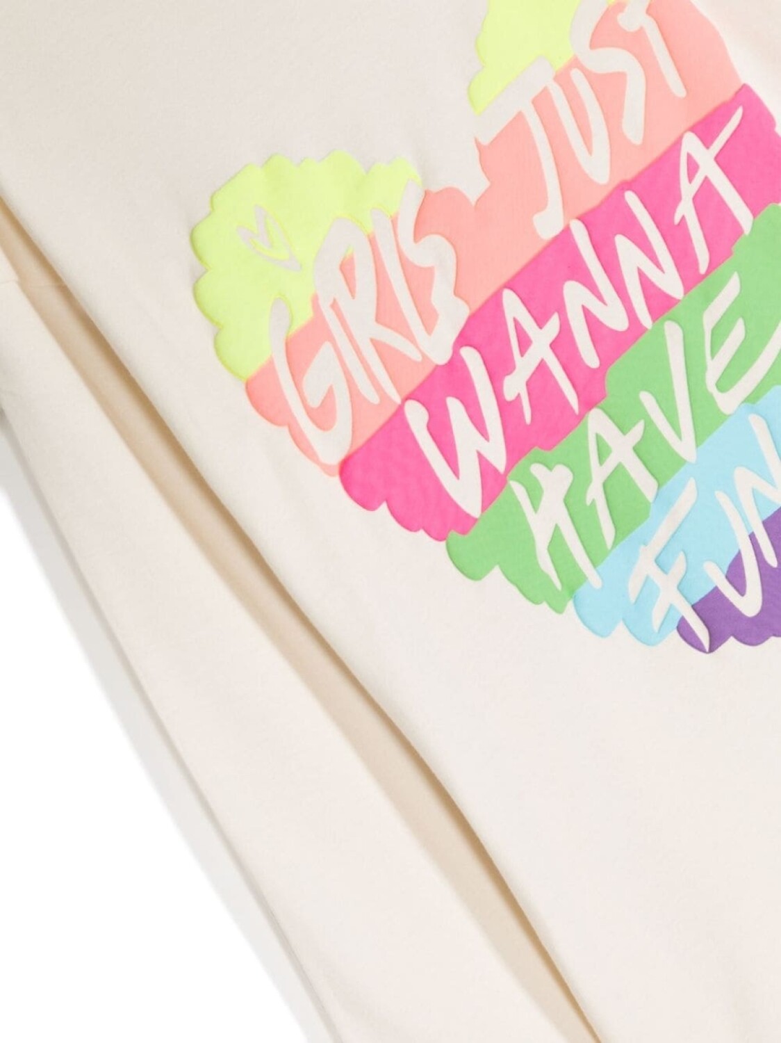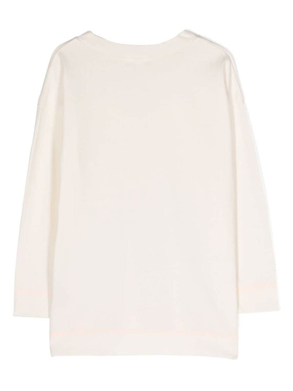 Кремово-белый, хлопок, графичный принт спереди, круглый вырез, длинные рукава и прямой подол.