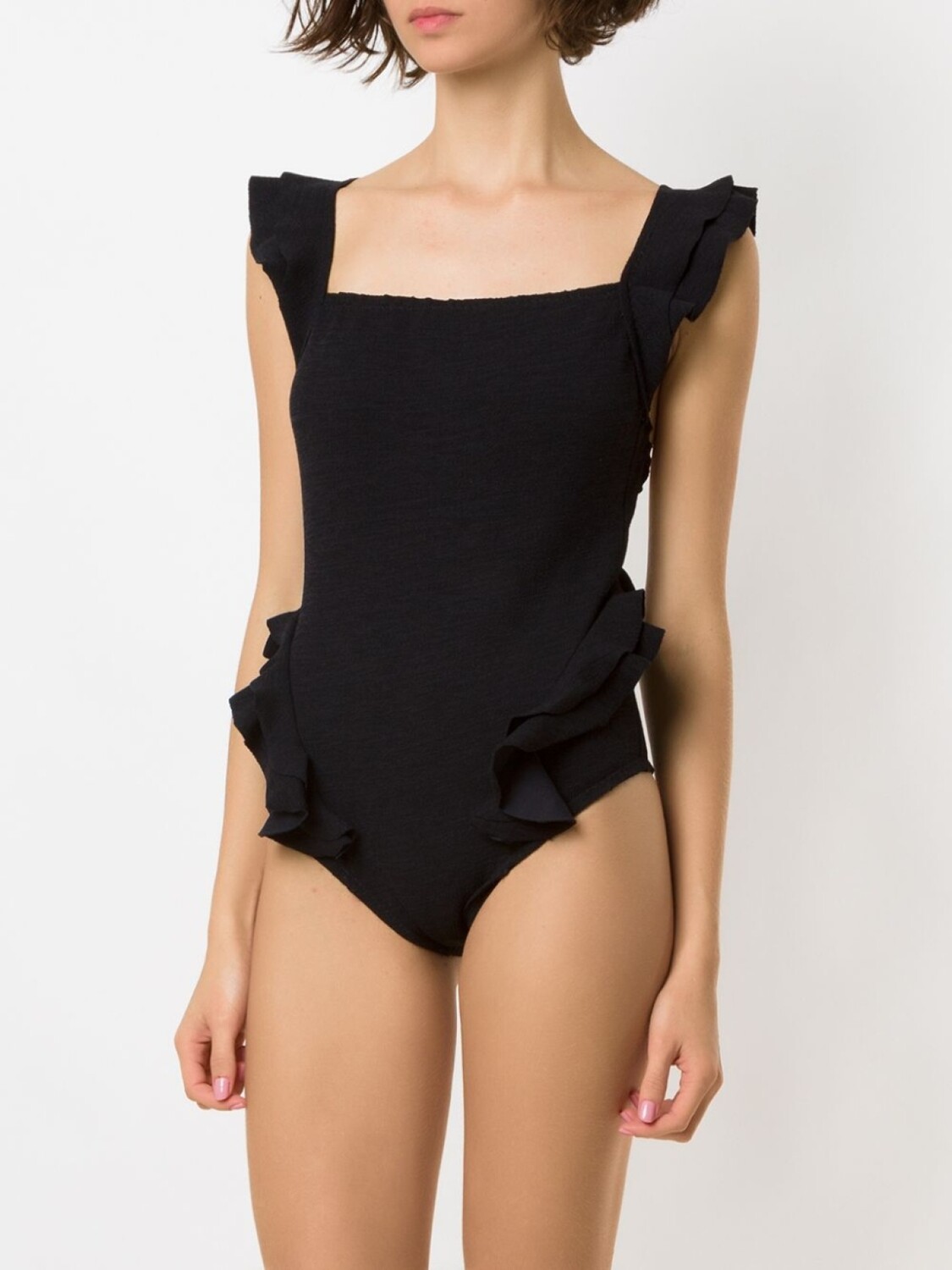 Купальник с оборками от Clube Bossa. Модель с декоративными оборками, квадратный вырез, эластичная модель и V-образный вырез на спине. Цвет: черный.