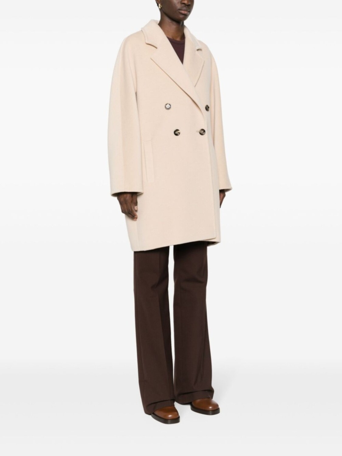 Двубортное пальто из смесовой шерсти Max Mara, бежевый