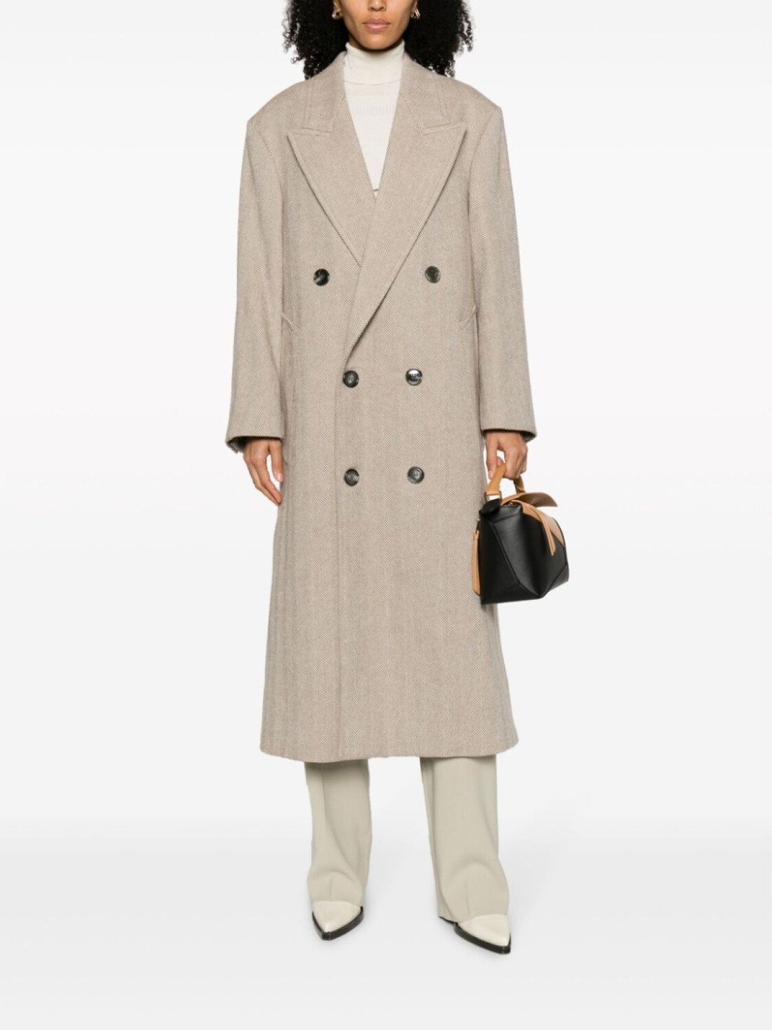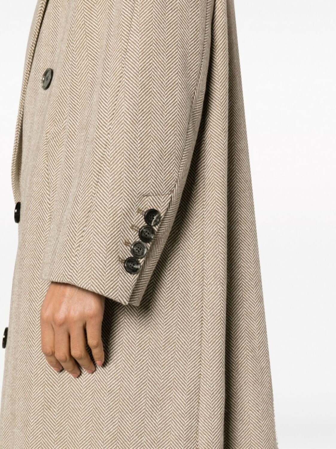 Двубортное пальто с узором в елочку AMI Paris, бежевый 159 247₽