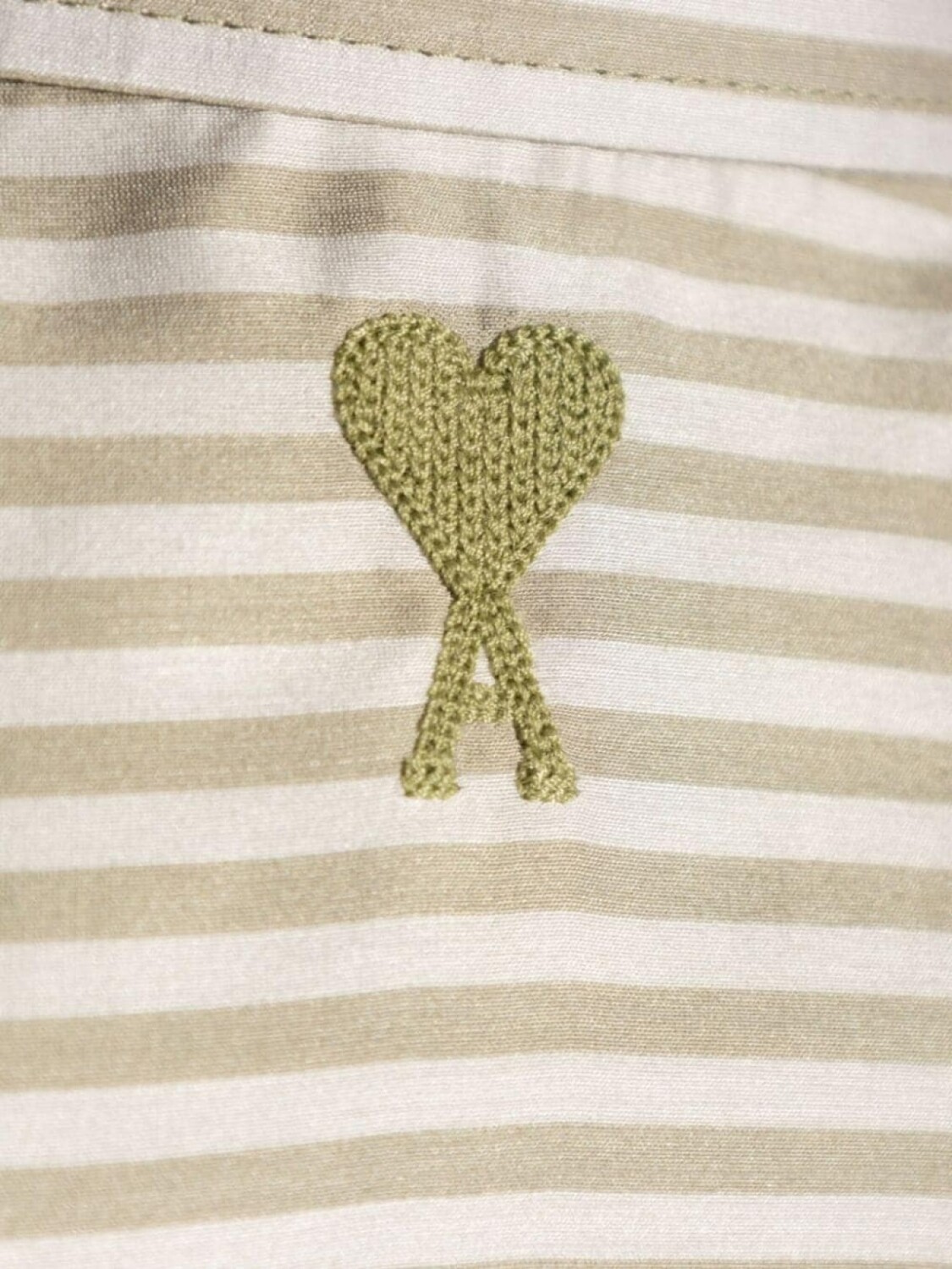 Зеленый/бежевый, узор в вертикальную полоску, знаковая монограмма Ami de Coeur сзади, классический воротник, длинные рукава, рукава с манжетами на пуговицах, закругленный подол, застежка на пуговицах спереди
