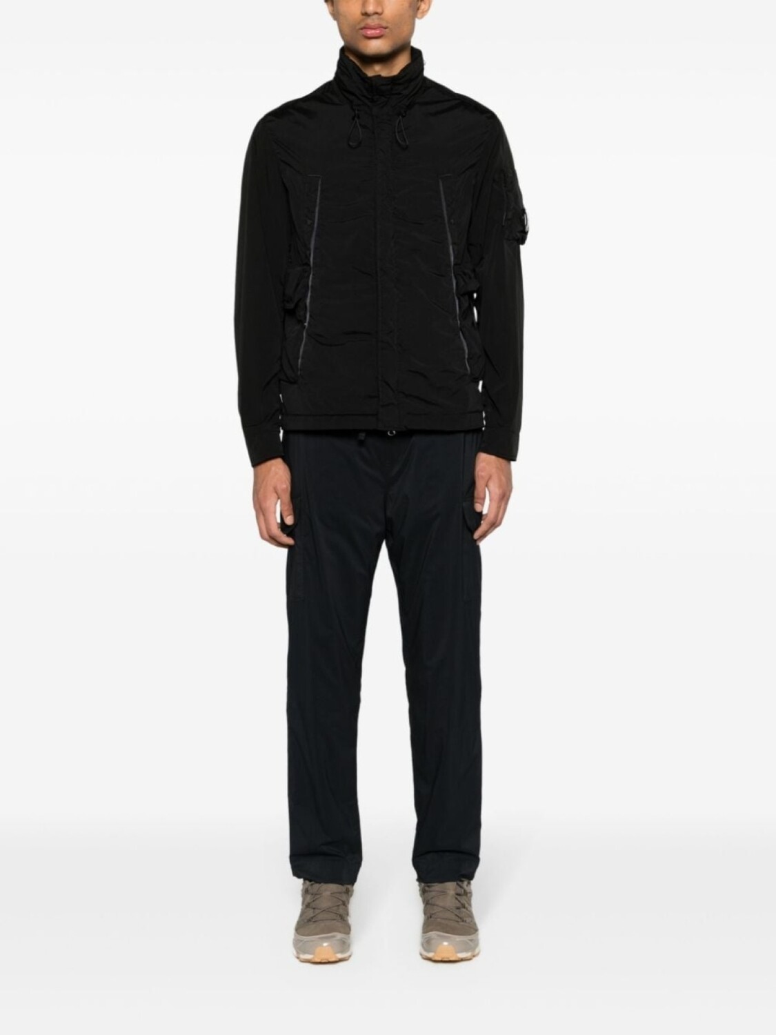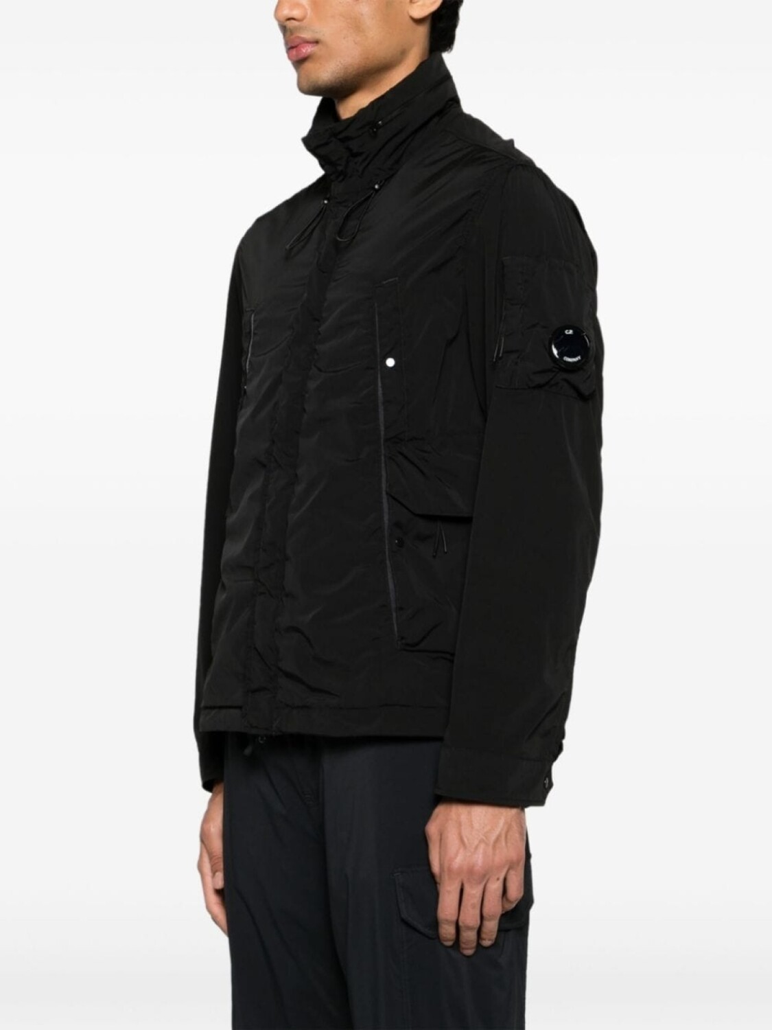 Подробнее о товаре: • черный • декоративная линза • воротник-труба • потайной капюшон • потайная застежка на молнии и кнопках спереди • длинные рукава • карман с молнией на рукаве • манжеты с застежкой на кнопки • карманы на кнопках • два кармана на молнии по бокам • внутренний накладной карман • подол с кулиской • C.P. Company рекомендуют снимать все отстегивающиеся аксессуары перед стиркой.