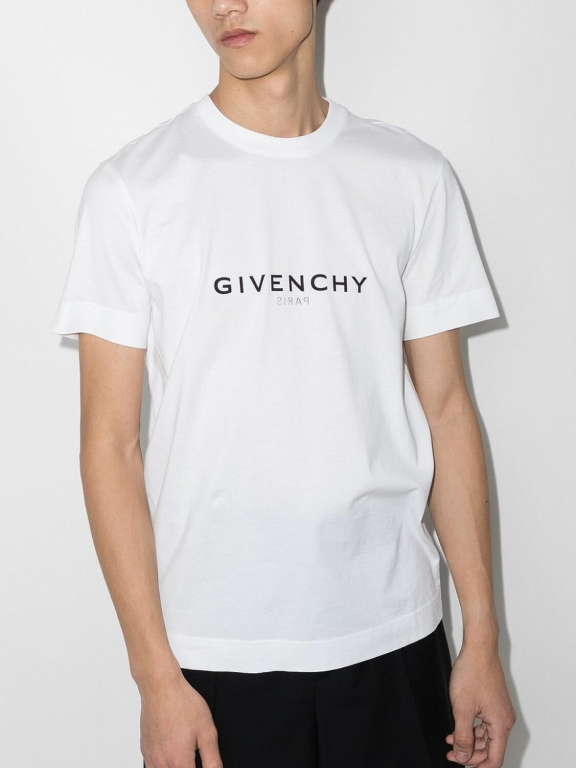 Логотип спереди, принт с логотипом сзади, знаковый узор 4G, круглый вырез, короткие рукава и прямой подол. Цвет: белый.