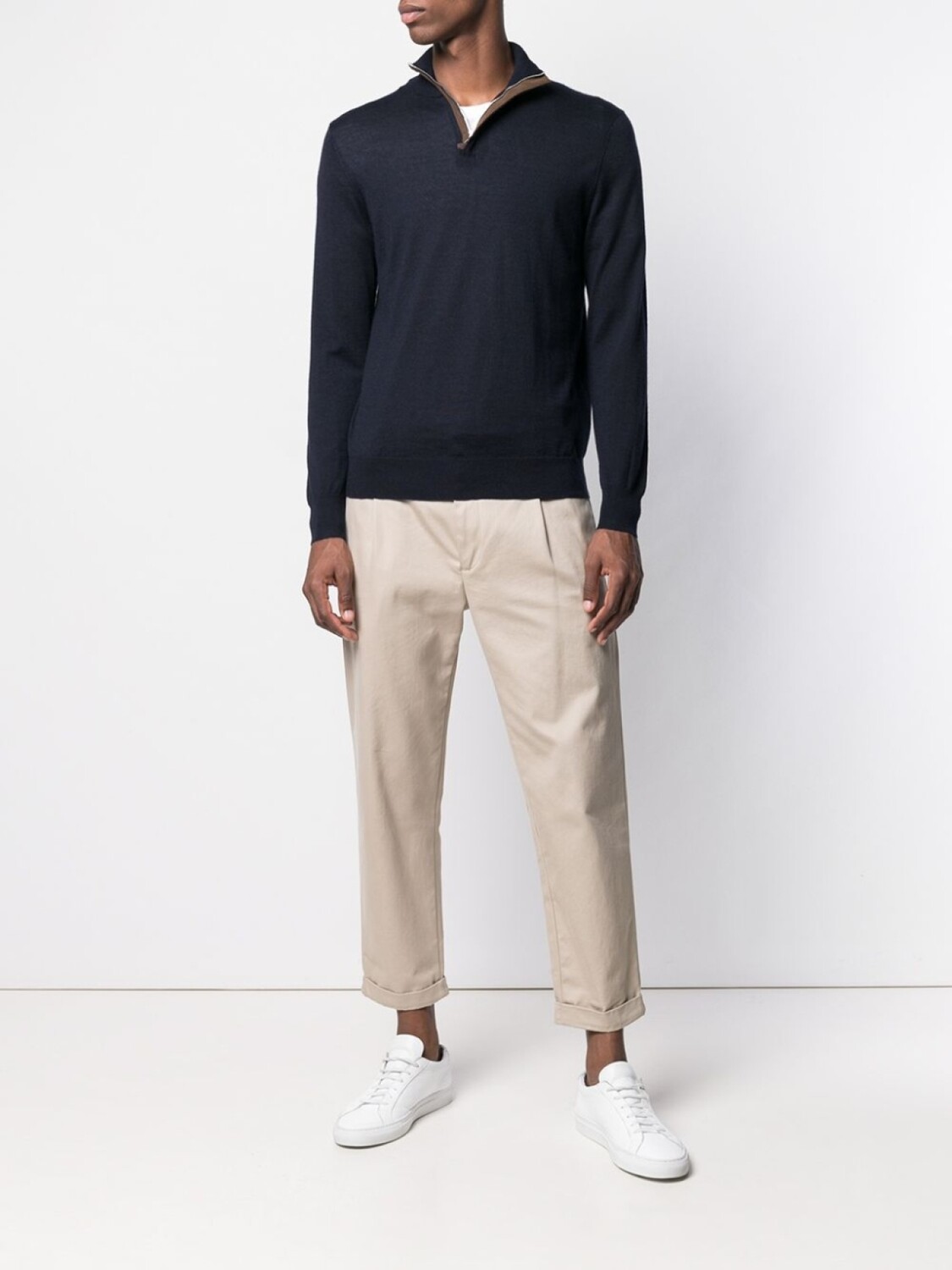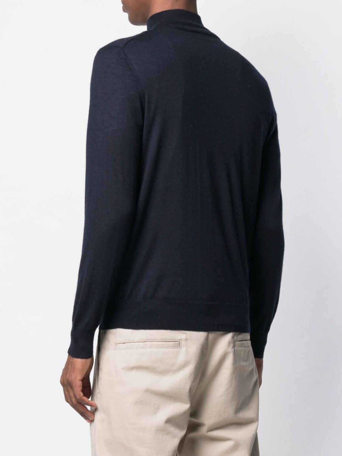Джемпер The Regent с короткой молнией от N.Peal. Высокое горлышко с заворотом, застежка на молнии спереди, длинные рукава, подол и манжеты в рубчик и тонкая вязка.
