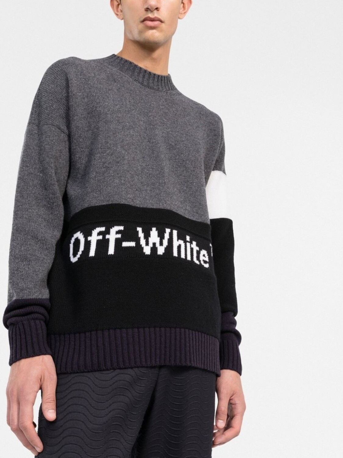 Джемпер вязки интарсия с логотипом Off-White, серый