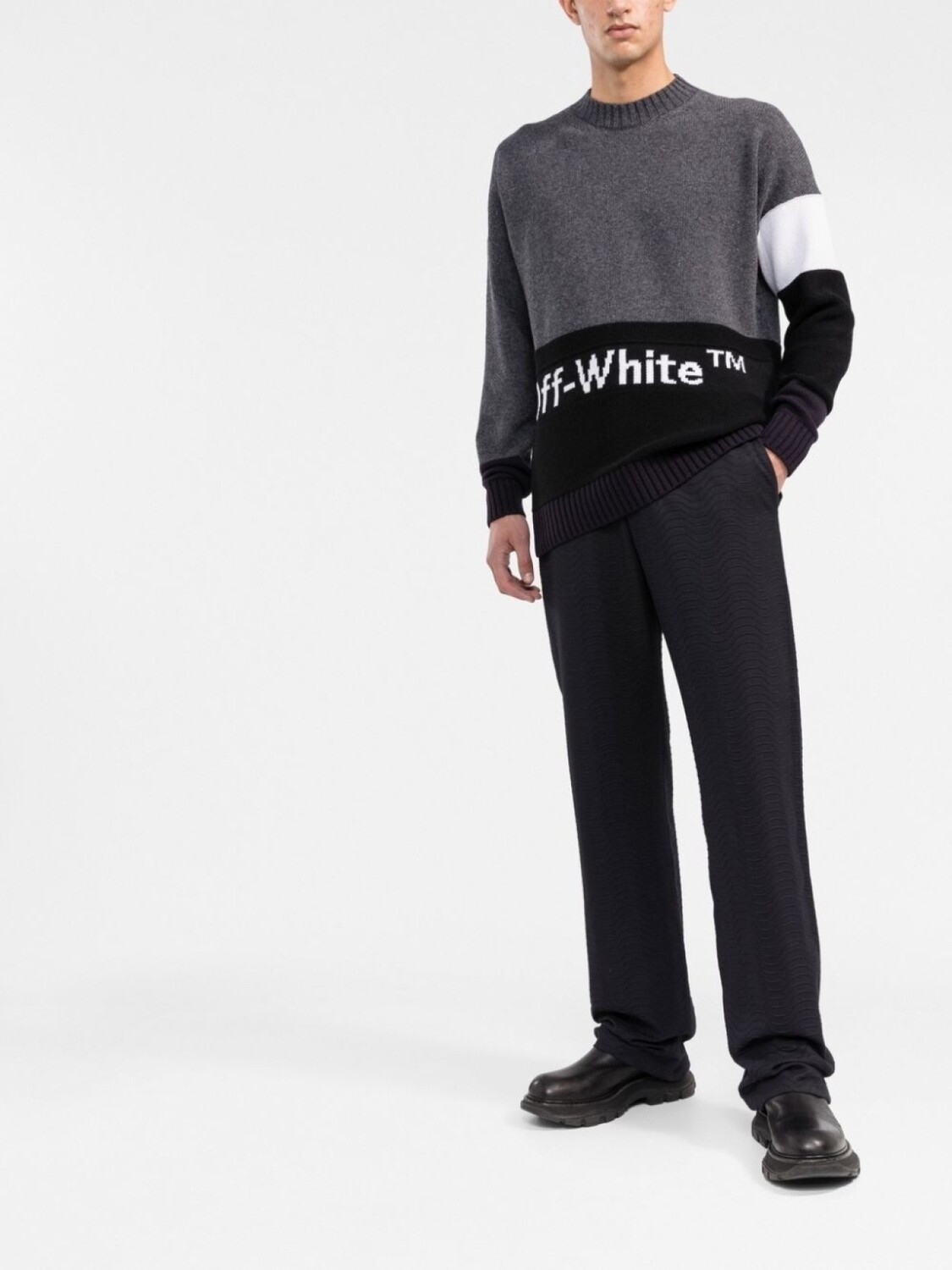 Джемпер вязки интарсия с логотипом Off-White, серый 70 980₽