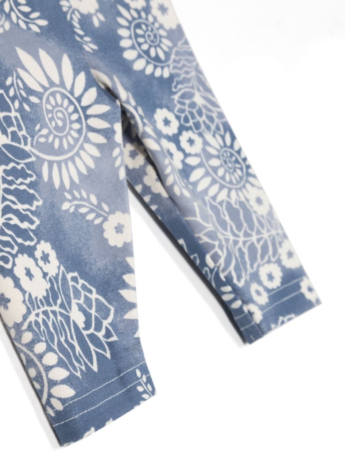 Лазурно-синий, цвет слоновой кости, эластичный хлопок, принт с изображением растений, эластичный пояс и прямой подол.