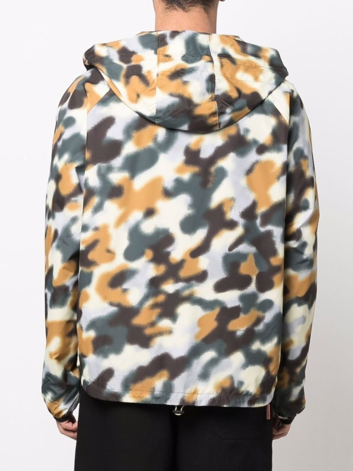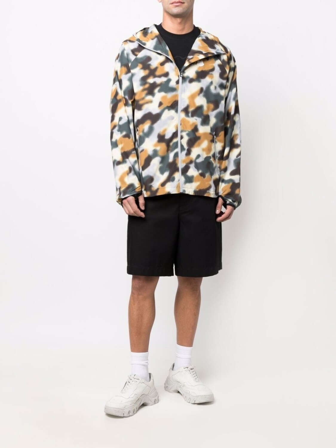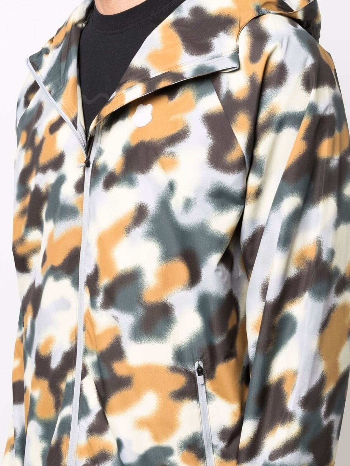 Нашивка с логотипом на груди, камуфляжный принт, застежка на молнии спереди, рукава реглан, классический капюшон, передние карманы на молнии и подол с кулиской. Цвет: разноцветный.