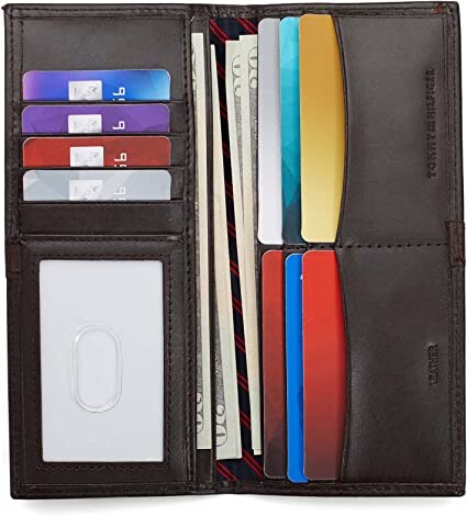 11 прорезей для карт, 2 больших отделения для купюр и 1 прозрачное окошко для удостоверения личности