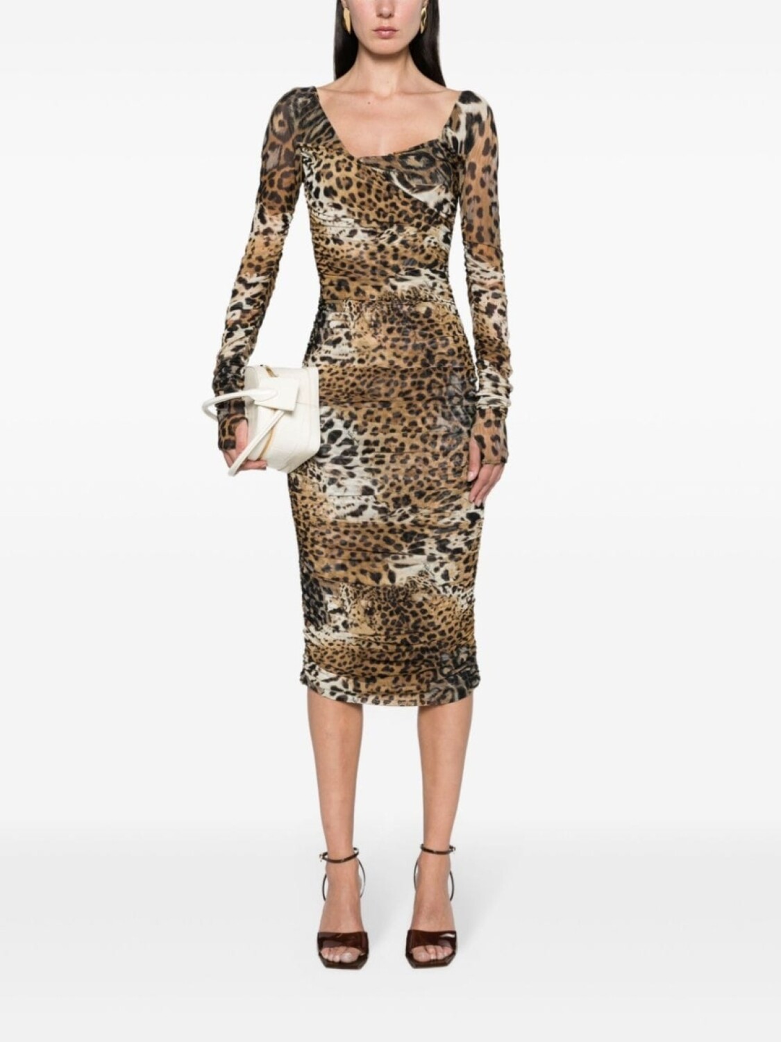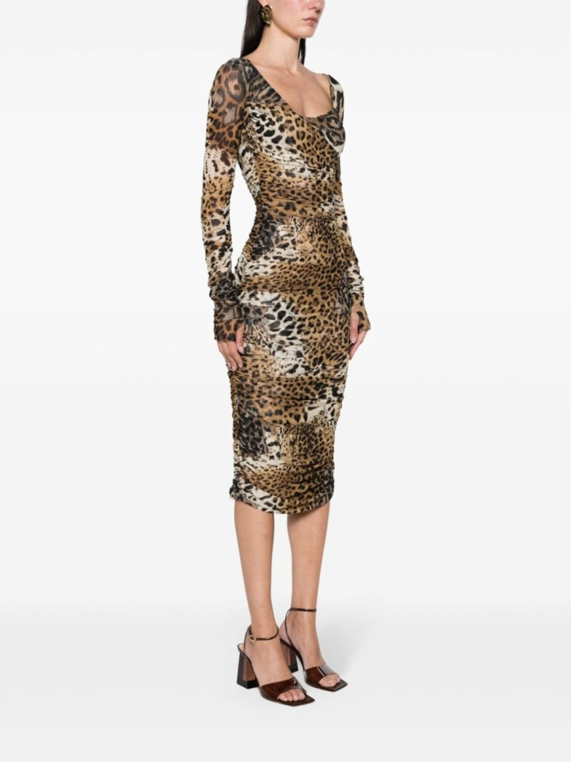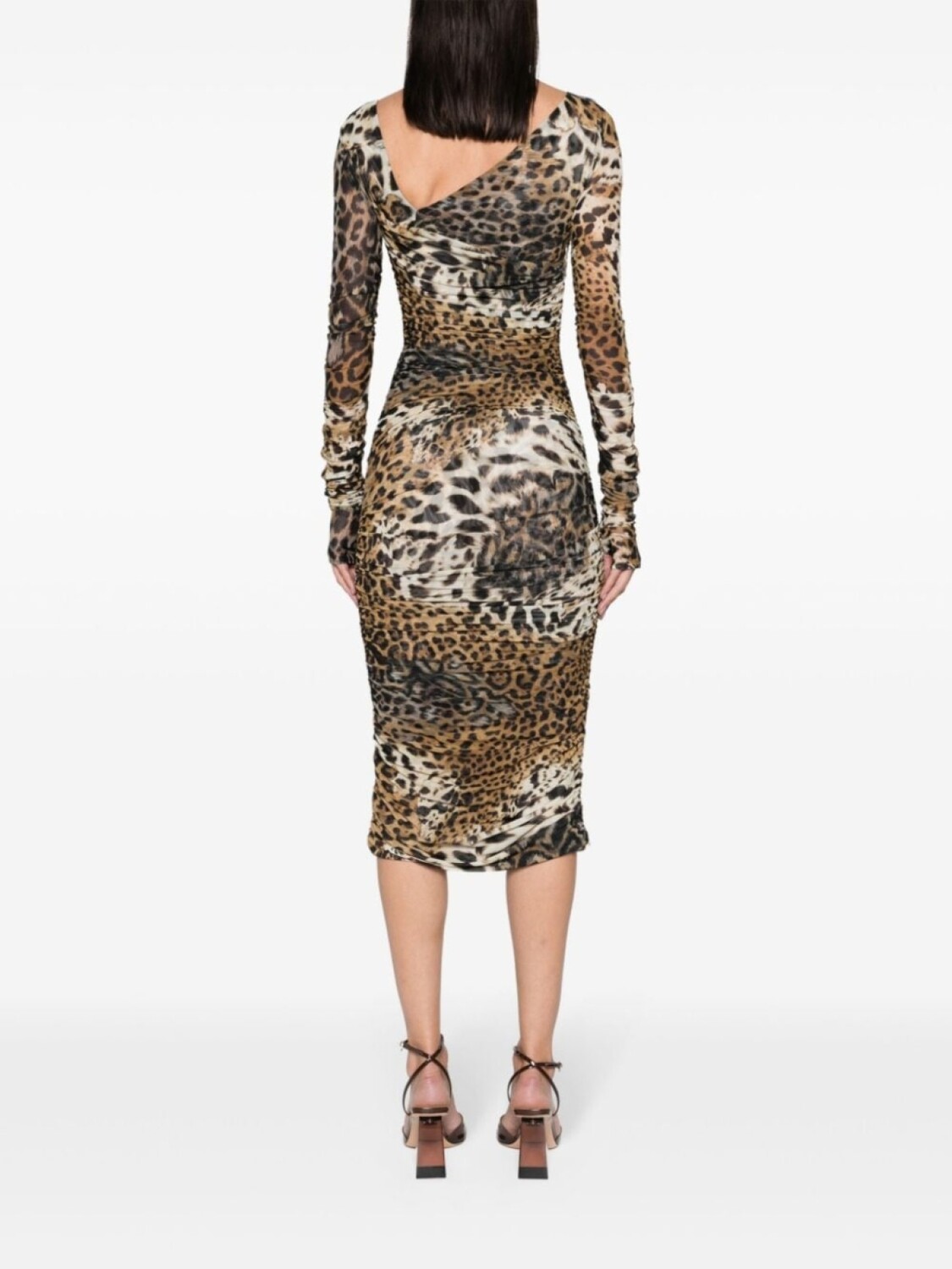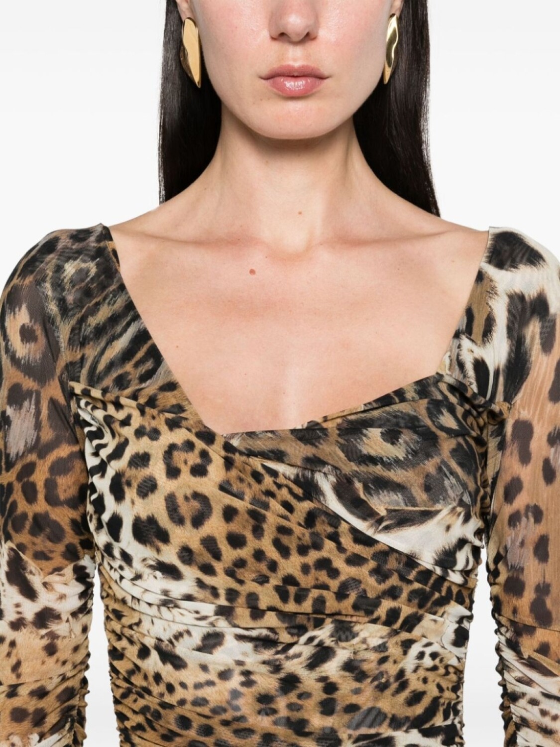 Сетчатое платье миди с леопардовым принтом Roberto Cavalli, бежевый 92 733₽