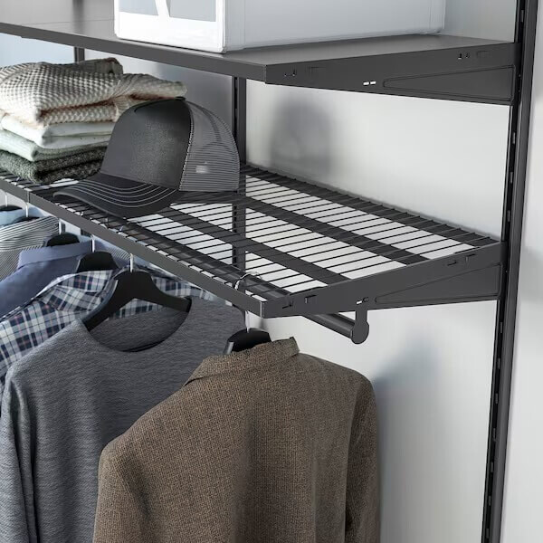 Эти настенные стойки составляют основу настенной системы хранения BOAXEL. Решите, сколько настенных стоек вам нужно, и дополните интерьер, чтобы создать индивидуальное хранилище для одежды и обуви.