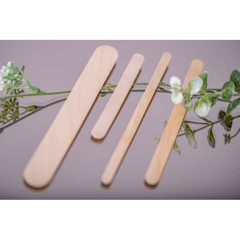 Деревянная лопаточка для нанесения воска во время депиляции. Они изготовлены из натурального дерева. Края закругленные, правильная форма. Они жесткие, гладкие и долговечные. Шпатели без запаха и вкуса.