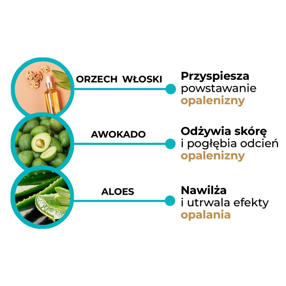 Более быстрый загар благодаря мощнейшему ускорителю Onyx, который обеспечивает красивый загар и увлажняет кожу уже после одного сеанса. Благодаря тирозину, кунжутному маслу и экстракту грецкого ореха загар появляется быстрее и держится дольше. Уникальная формула, ускоряющая загар, содержит богатую комбинацию масел: авокадо, макадамии, сои, таману и масла ши, а также сок листьев алоэ, которые обеспечивают оптимальный уровень увлажнения для поддержания привлекательного загара.
