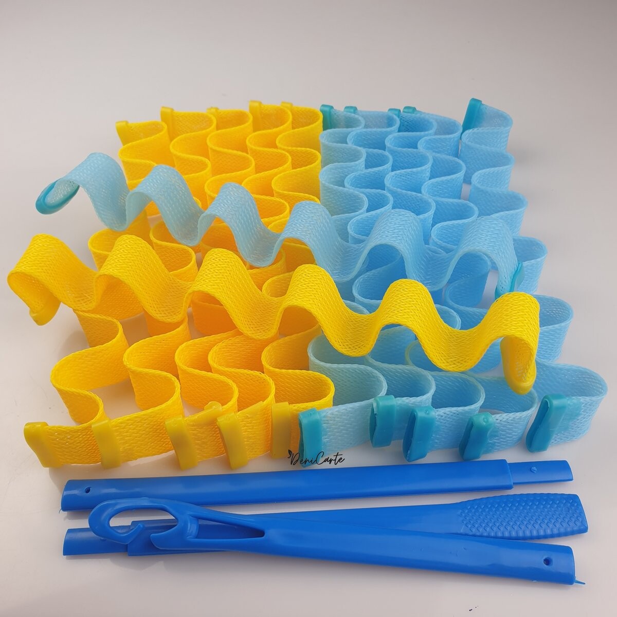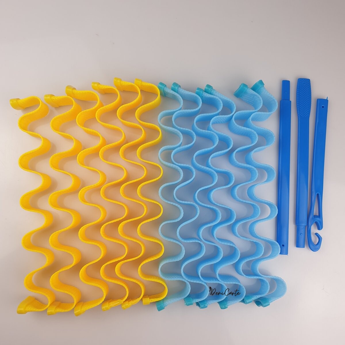 Бигуди можно использовать оставаться на голове до полного высыхания волос. Их также можно сушить феном. Они изготовлены из растягивающегося пластика.