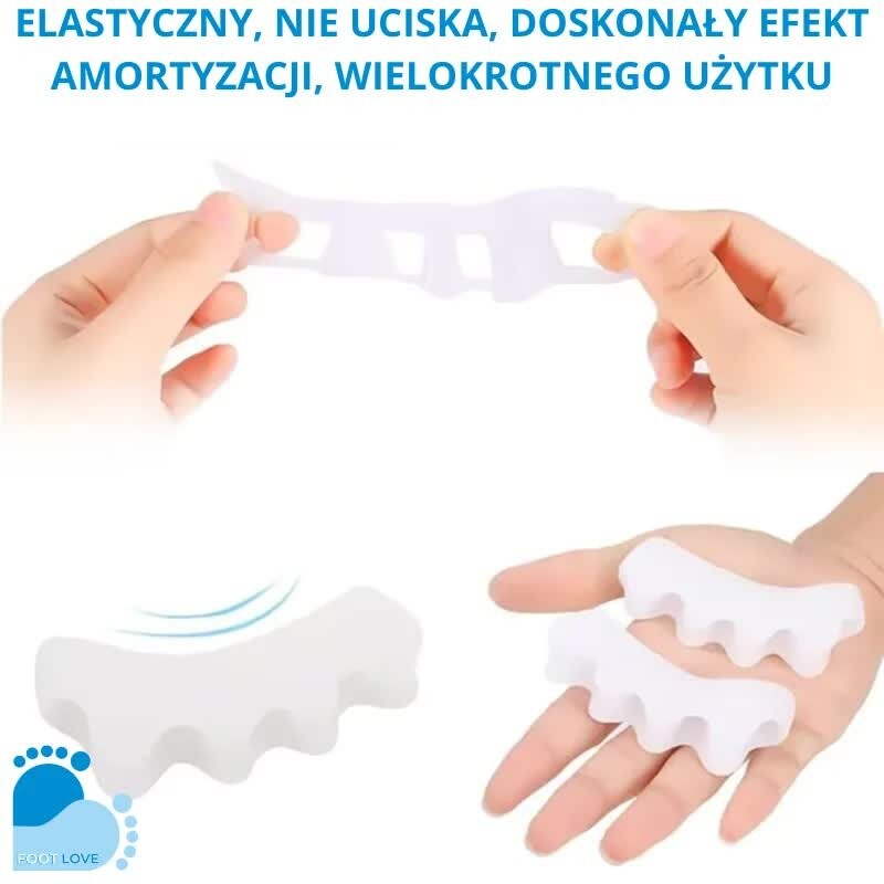 Силиконовый мультисепаратор на 4 шт. клиньями между пальцами ног и валиком в подошвенной части разъединяет все пальцы и выпрямляет их. Показан для профилактики вальгусной деформации (hallux valgus) и молоткообразных и когтеобразных пальцев стопы, предотвращает усиление деформации, уменьшает болевые ощущения, возникающие при ношении тесной обуви. уменьшает объем дефекта, приводя к правильному расположению пальцев стопы. Они также идеально подходят для педикюра. Приобретение одного предмета позволит вам протестировать его или использовать, если проблема затрагивает одну ногу.