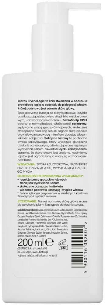 BIOVAX Trychologic Масляный шампунь для волос и кожи головы 200 мл