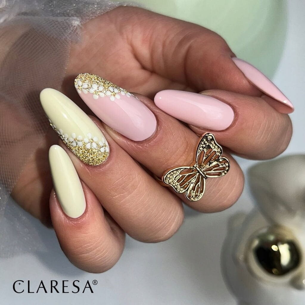 Нанесите тонкий слой цветного гибридного лака на предварительно затвердевшую гибридную основу Claresa и просушите его в УФ/LED-лампе. Для достижения удовлетворительного эффекта вы можете повторить действие. Закрепите укладку, нанеся и закрепив топ Claresa.