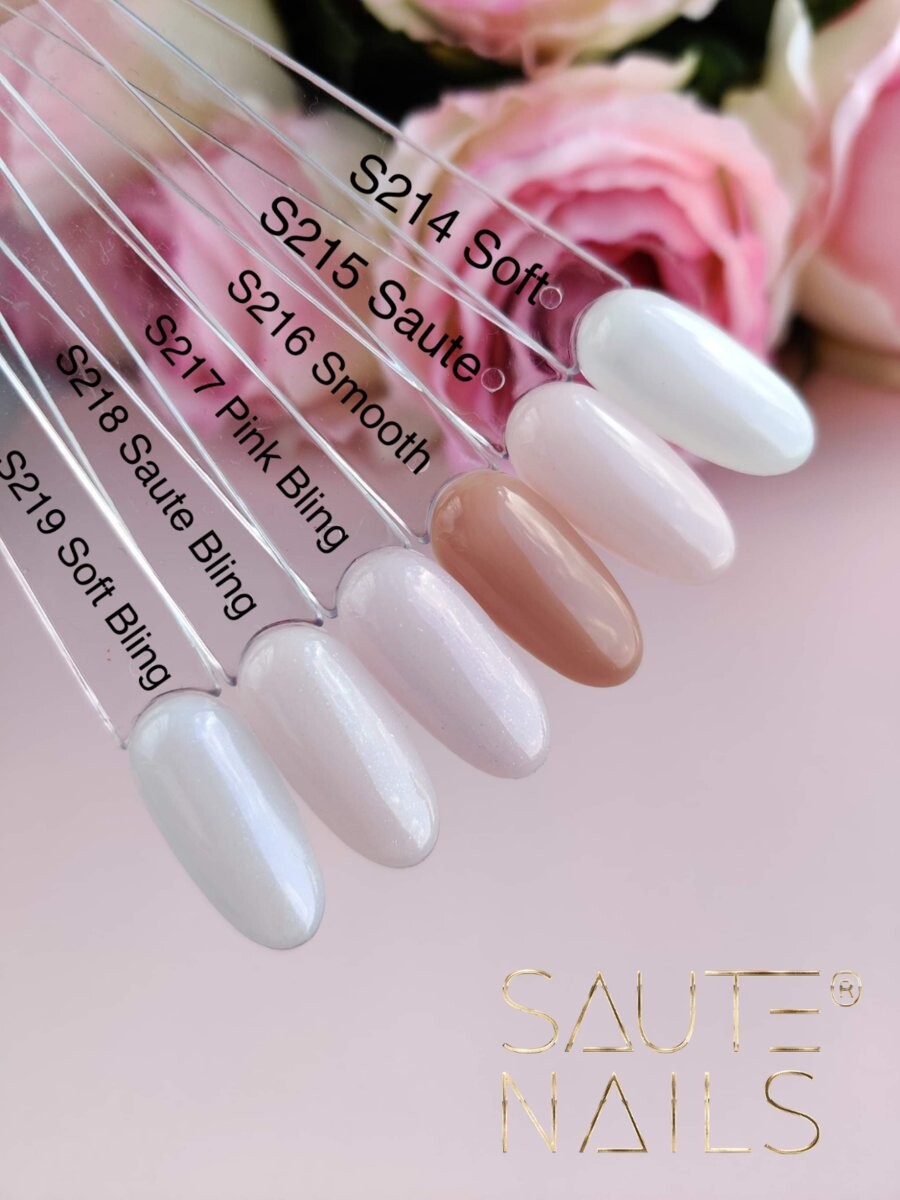 Флагманский оттенок коллекции Saute Красивый, полупрозрачный розовый, который подойдет как основа для любого украшения, так и в качестве самостоятельного укладки.