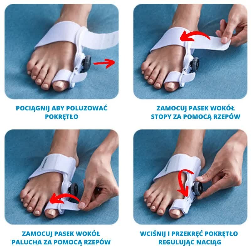 Прикрепите ремешок на липучке сначала вокруг большого пальца, затем вокруг большого пальца ноги. стопу и, наконец, вокруг пятки