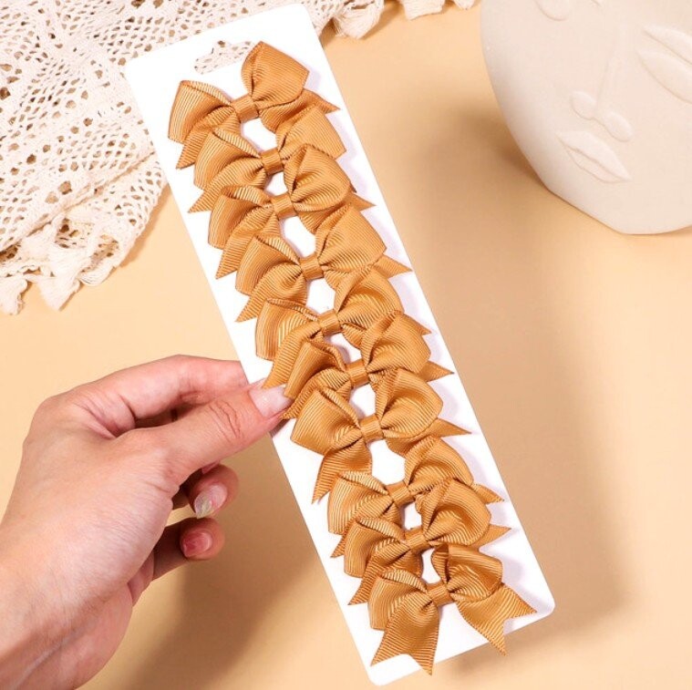 В наборе 10 зажимов с разноцветными бантиками.