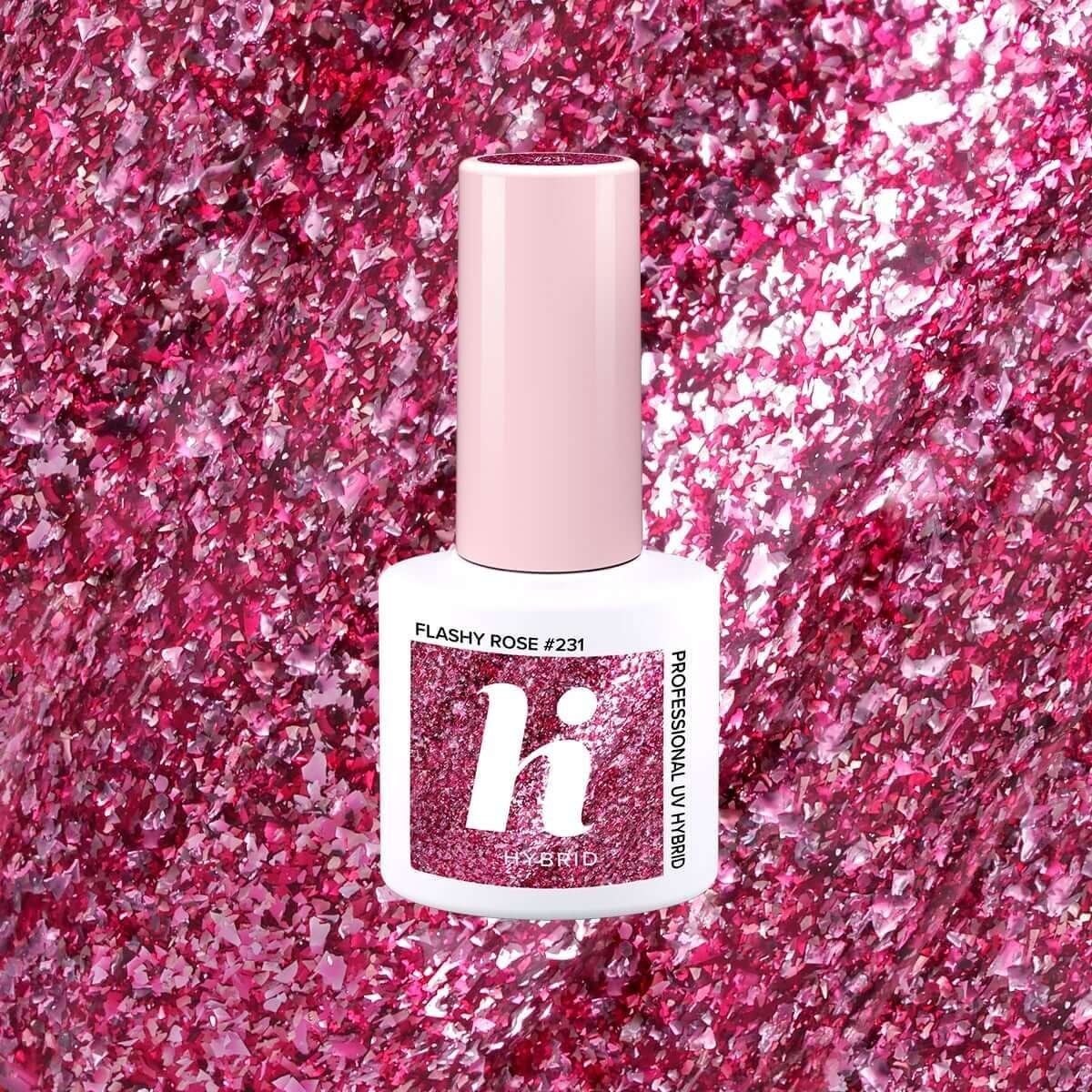 Лаки для ногтей — популярный косметический продукт, позволяющий персонализировать и украсить ногти в соответствии с вашими предпочтениями. Многие бренды предлагают широкий выбор цветов, эффектов и формул, таких как матовые, мерцающие, металлические или блестящие. Существует множество типов лаков для ногтей, в том числе традиционные классические лаки для ногтей, гибридные лаки для ногтей, сочетающие в себе черты геля и традиционные лаки для ногтей. Каждый тип имеет свои уникальные особенности и преимущества, адаптированные к различным предпочтениям и потребностям пользователей. С развитием технологий лаков все более прочные, быстросохнущие и простые в нанесении формулы обеспечивают не только красивый внешний вид, но и комфорт и долговечность укладки. Hi Hybrid, Sparkle, гибридный лак для ногтей №231 Flashy Rose, 5 мл