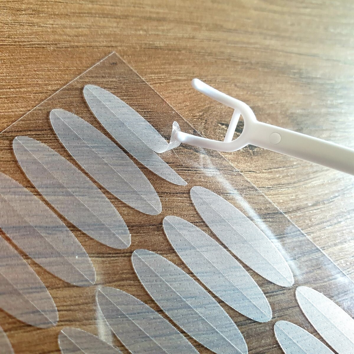 Самоклеящиеся ленты для коррекции опущенных век. Благодаря материалу, из которого они изготовлены (гибкая медицинская резина), складки можно располагать как угодно.