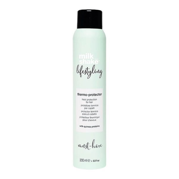 Milk Shake Lifestyling Thermo Protector Spray – универсальное косметическое средство, защищающее структуру волос от воздействия высоких температур. Благодаря содержанию киноа, протеинов шелка и молока создает невидимый фильтр на поверхности волос, предотвращая их повреждение и сокращая время сушки.