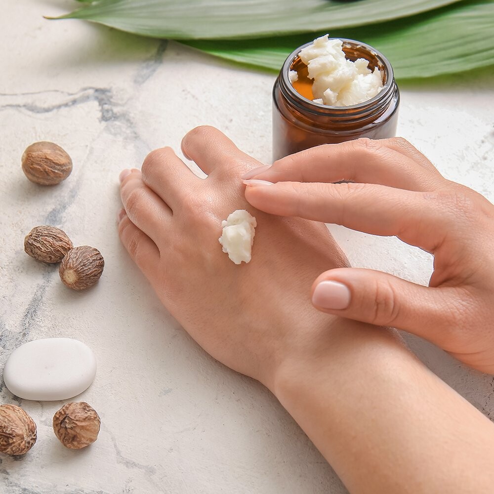 Защита от внешних факторов –ммасло ши создает на коже защитный барьер, который помогает защититься от вредных факторов внешние факторы, такие как холод, ветер или загрязнение окружающей среды. Он также действует как естественный солнцезащитный крем, хотя и с низкой эффективностью. и может помочь защитить от УФ-излучения.