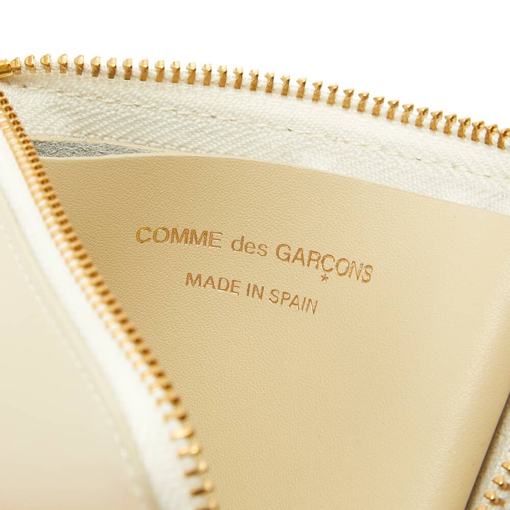 Ярко-белый кошелек Comme des Garçons — стильный способ носить с собой деньги. Он сделан из воловьей кожи и имеет удобный накладной карман, застегивающийся на золотистую молнию.