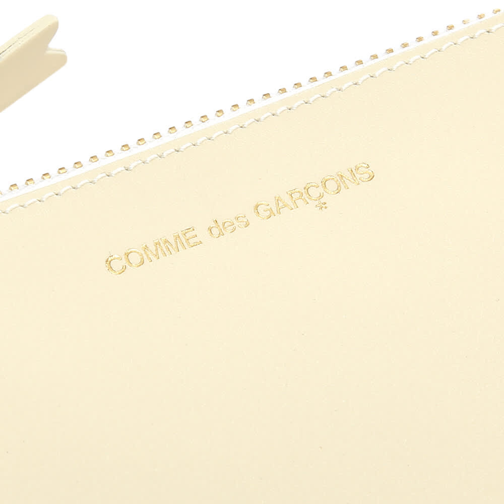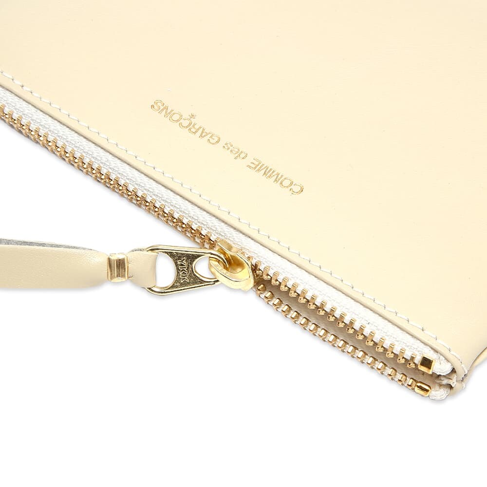 Этот белый бумажник SA8100 идеально подходит для монет, карт и наличных и имеет одно отделение на молнии. Аксессуар из коллекции Classic от Comme des Garçons. Аккуратный корпус с золотистой молнией изготовлен из высококачественной воловьей кожи в Испании.