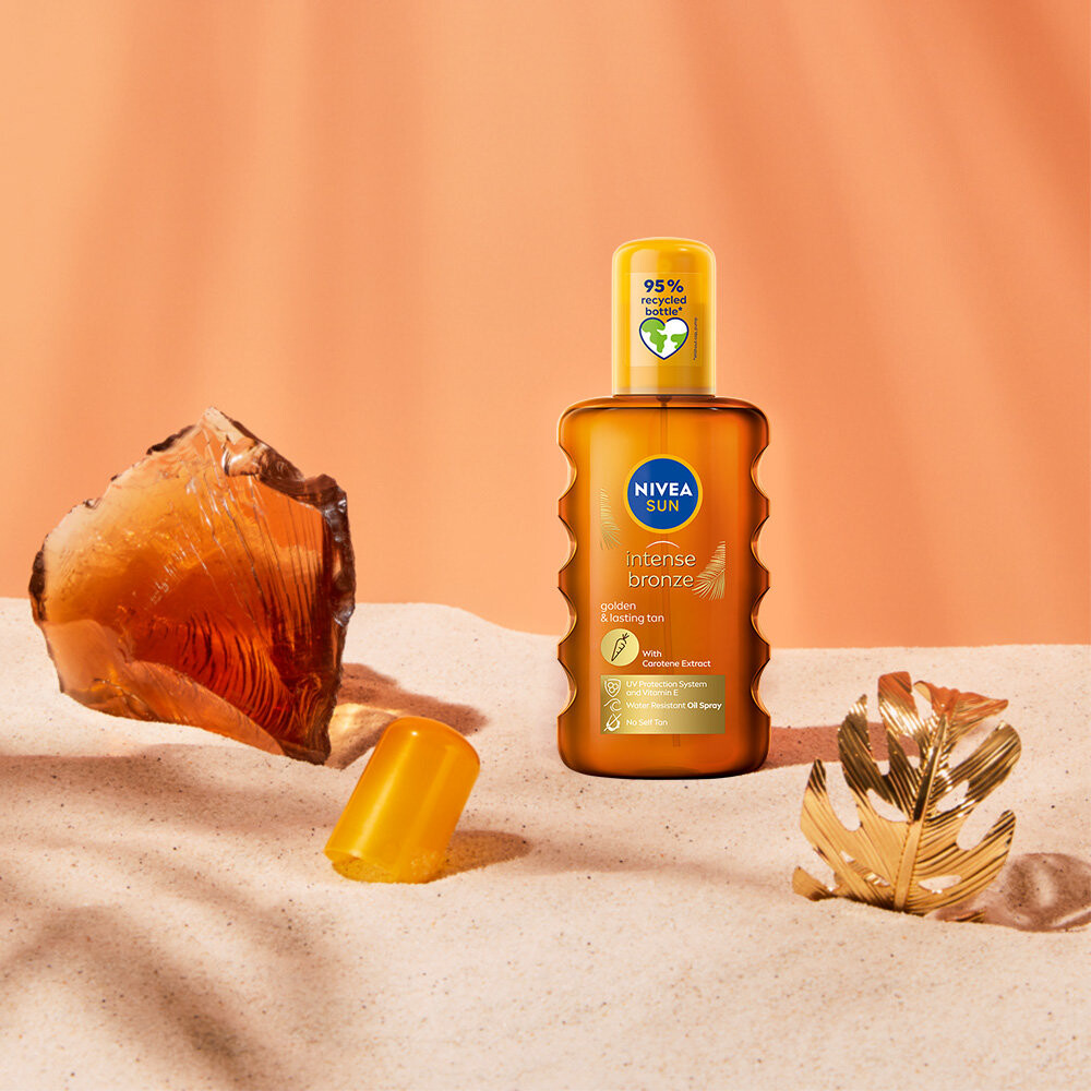 Масло-спрей для загара NIVEA SUN Carotene помогает коже обрести золотистый, интенсивный и стойкий загар. Он также защищает от лучей UVA/UVB и благодаря SPF 6 защищает кожу от солнечных ожогов. Кроме того формула с каротином и экстрактом витамина Е делает кожу гладкой и шелковистой. Формула водостойкая и не содержит автозагара.