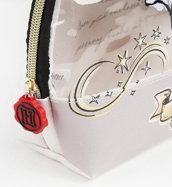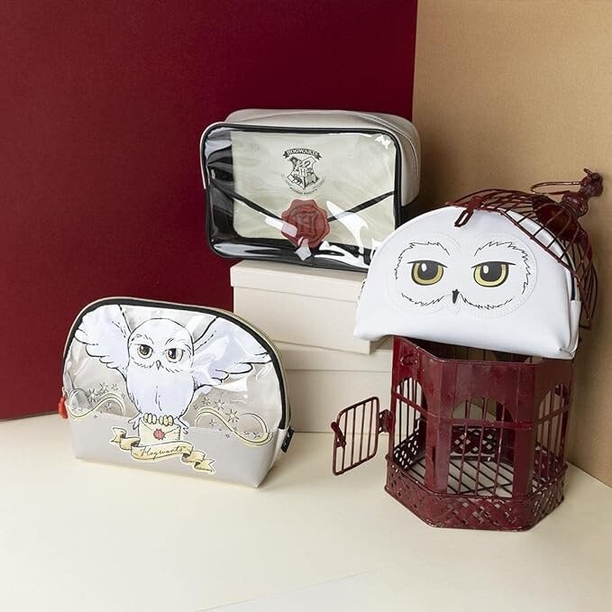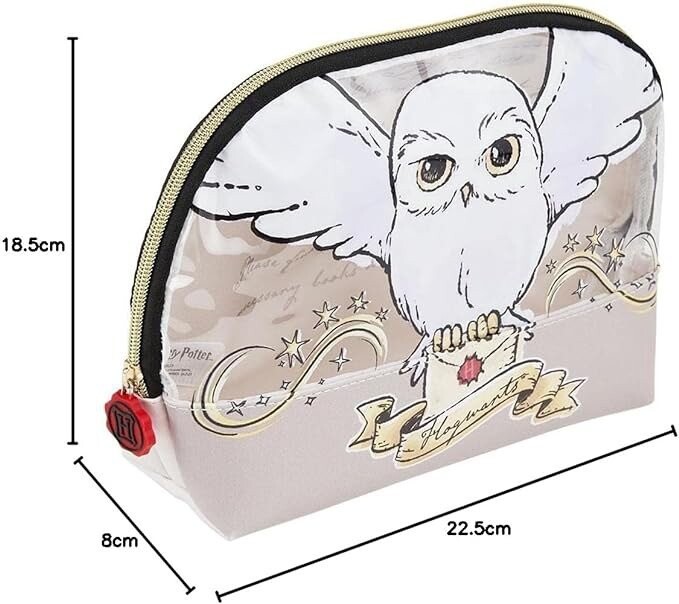 Бежевая косметичка на молнии с изображением совы Хедвиг.