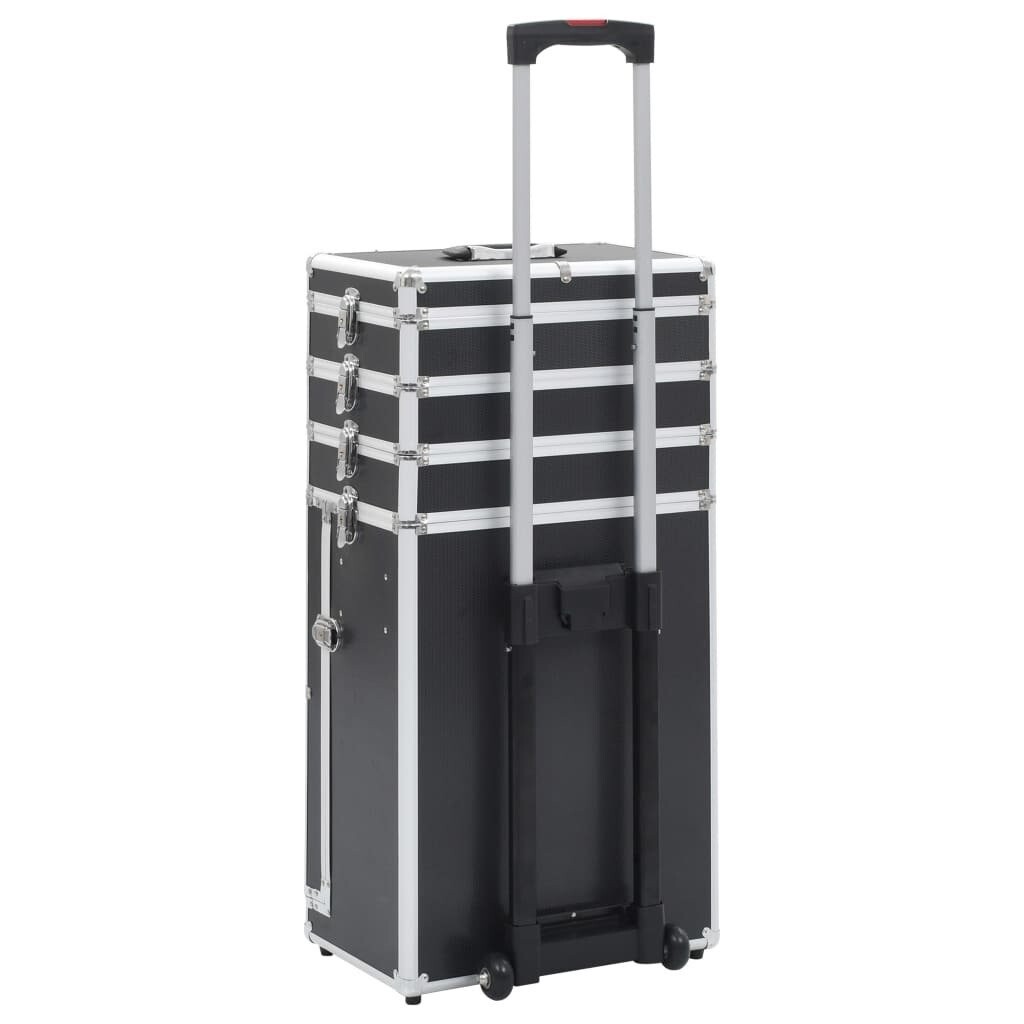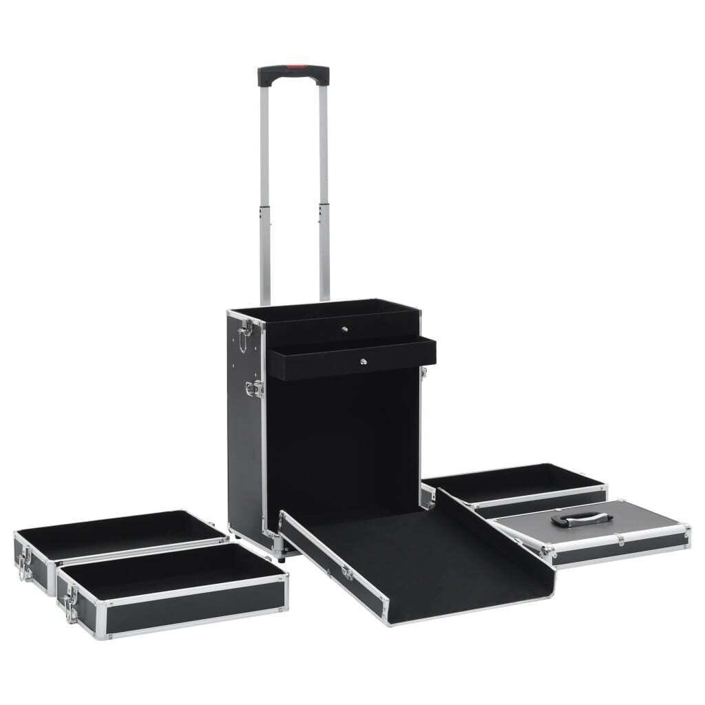 Тележка для макияжа, изготовленная из дерева, листов АБС-пластика и алюминия, поместит вашу косметику и сохранит ее в идеальном состоянии. Чемодан имеет 4 уровня и 1 ящик, в котором достаточно места для косметики и косметических средств. 4 съемных колеса позволяют легко перемещать кейс и брать его с собой куда угодно.