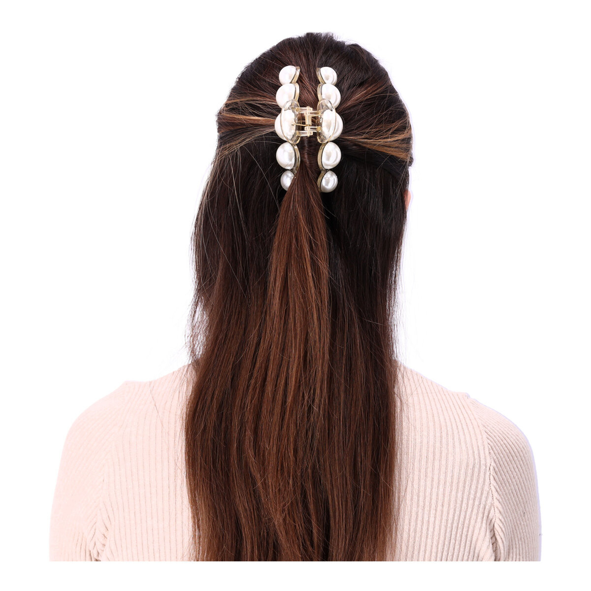 Пряжка идеального размера. Подходит женщинам с длинными и короткими волосами. Светящийся жемчуг хорошо смотрится на темных, каштановых и светлых волосах. Стильная застежка очень хорошо удерживает волосы. Это облегчает создание эффектных и оригинальных причесок. Благодаря небольшому размеру пряжку можно легко положить в косметичку и брать с собой куда угодно.