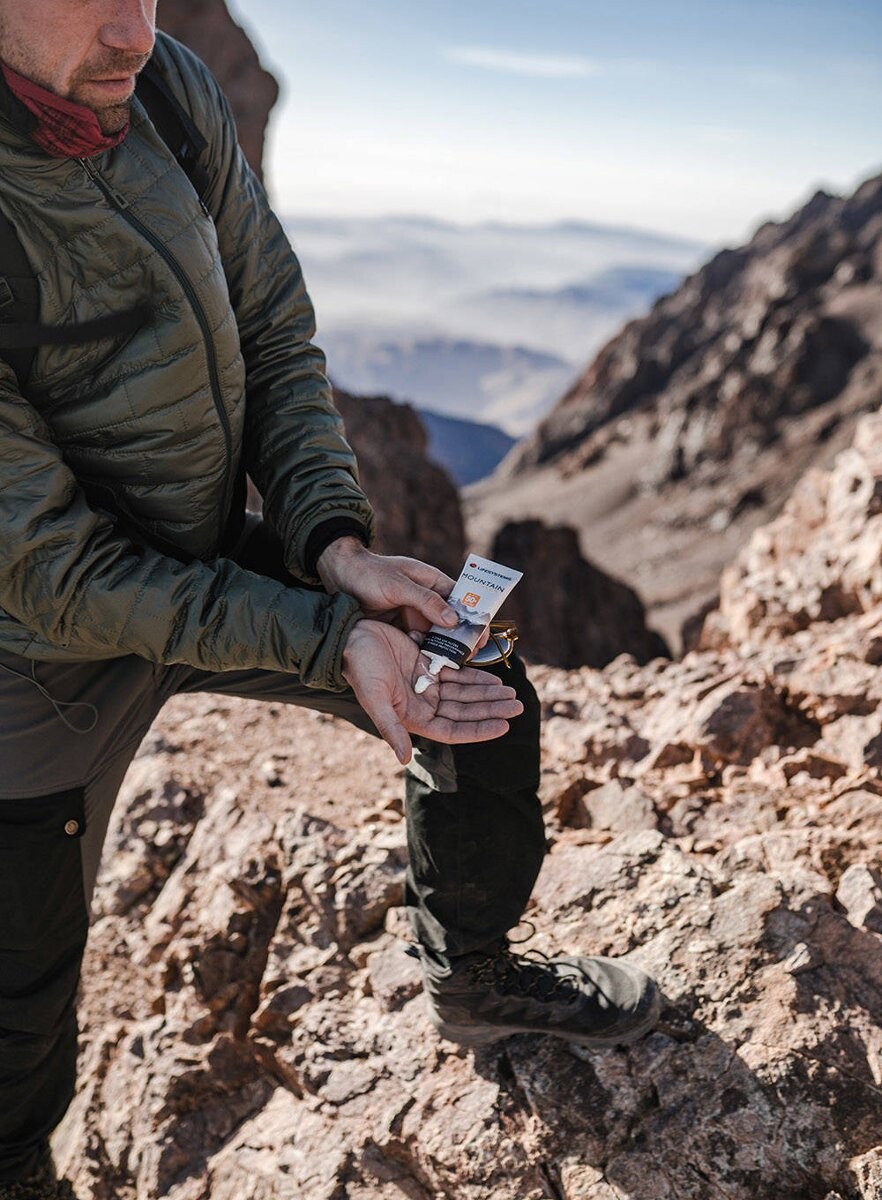 Защищайте открытую кожу от вредных солнечных лучей. Солнцезащитный крем Mountain SPF 50+ защищает от UVB/UVA-излучения и защищает кожу от повреждений. Солнцезащитный крем Mountain SPF 50+ обеспечивает эффективную защиту от палящего солнца. Находясь в горах, на пляже или в местах с повышенной влажностью, вы подвергаетесь ожогам.