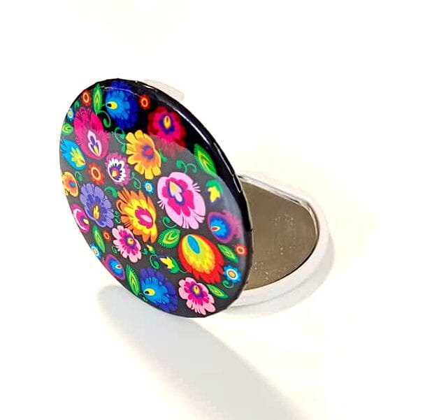 Отличный практичный народный гаджет для женщин в народном стиле. Внутри два зеркала. Он легко помещается не только в сумочке, но даже в небольшом кармане, помогая быстро подкорректировать макияж. Украшен с обеих сторон узорами Ловича.