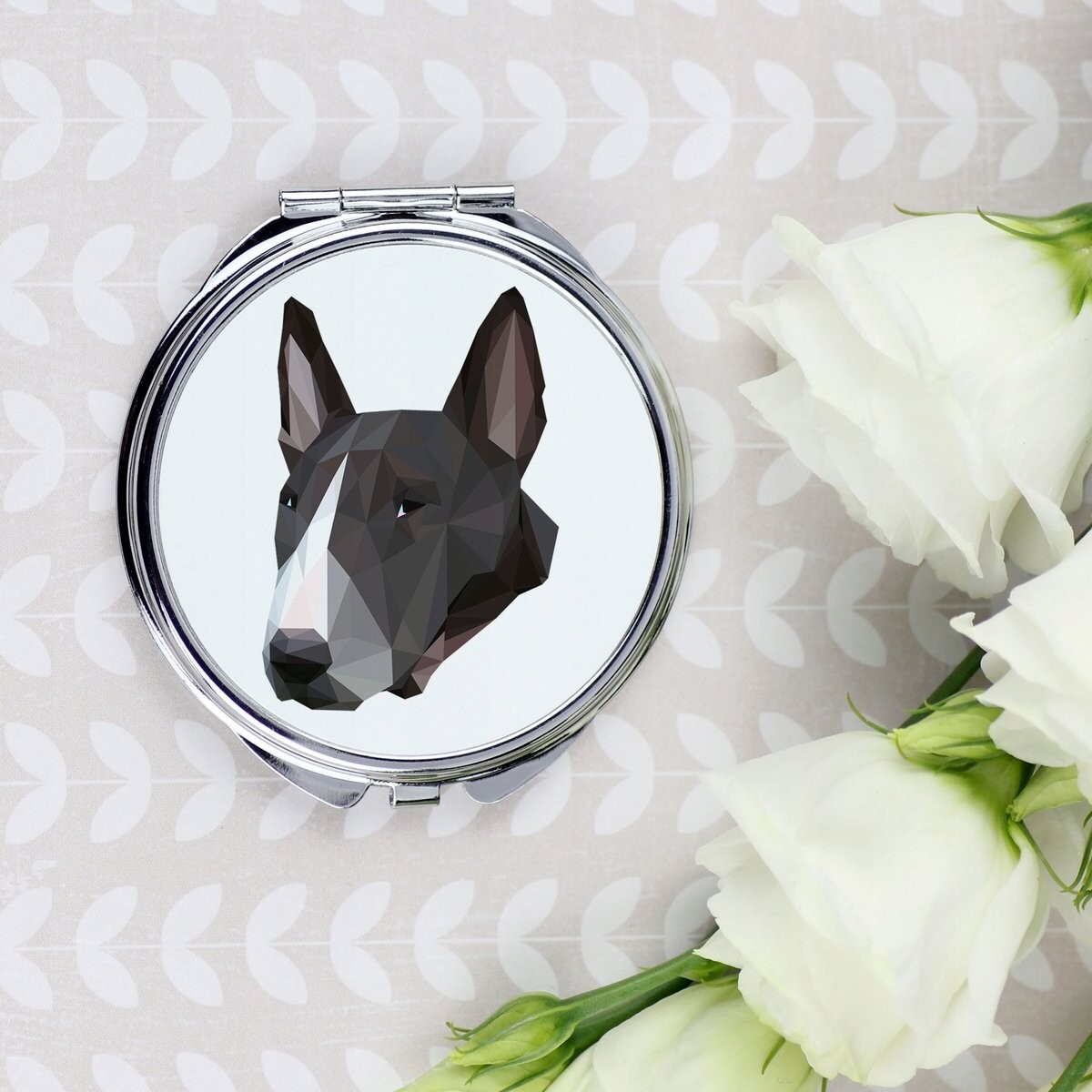 Ищете практичный, но нестандартный подарок для любителей собак? Наше зеркало наверняка порадует каждую женщину, которая любит подчеркивать свою близость к своему питомцу изящными аксессуарами. Изделие закрывается на защелку, имеет два зеркала внутри и элегантный узор на спинке.