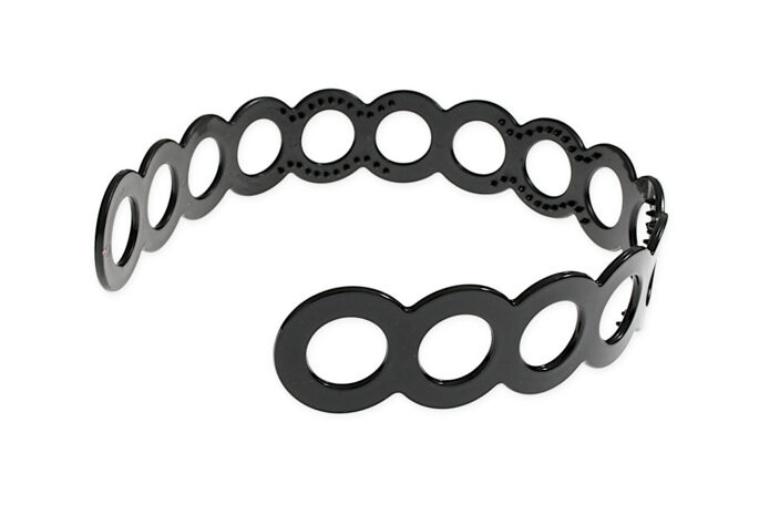 Классическая широкая резинка для волос из черных пластиковых кругов.