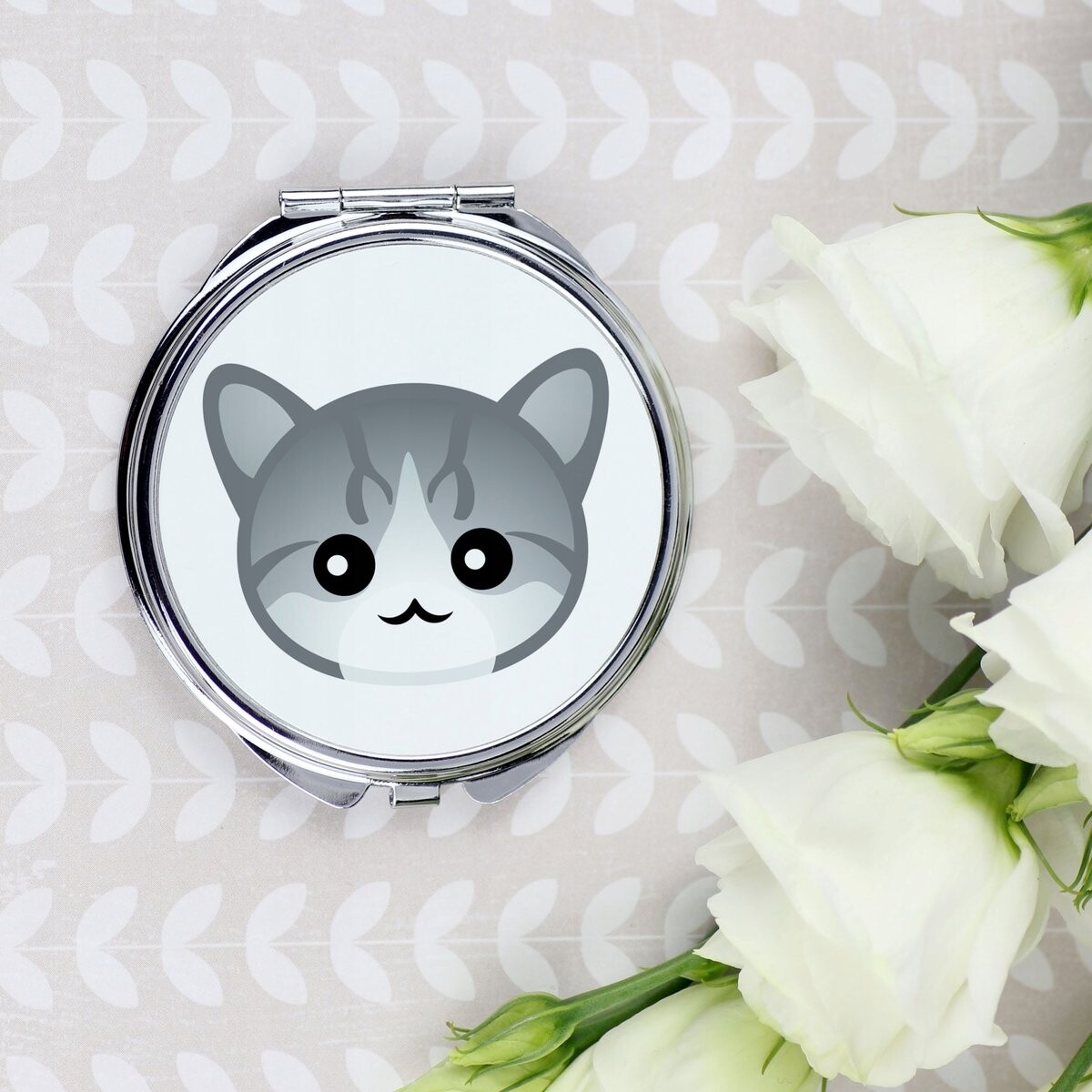 Ищете практичный, но нестандартный подарок любителю кошек? Наше зеркало наверняка порадует каждую женщину, которая любит подчеркивать свою близость к своему питомцу изящными аксессуарами. Изделие закрывается на защелку и имеет внутри два зеркала.