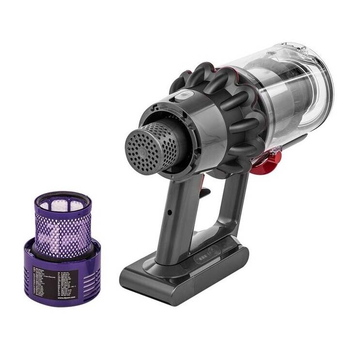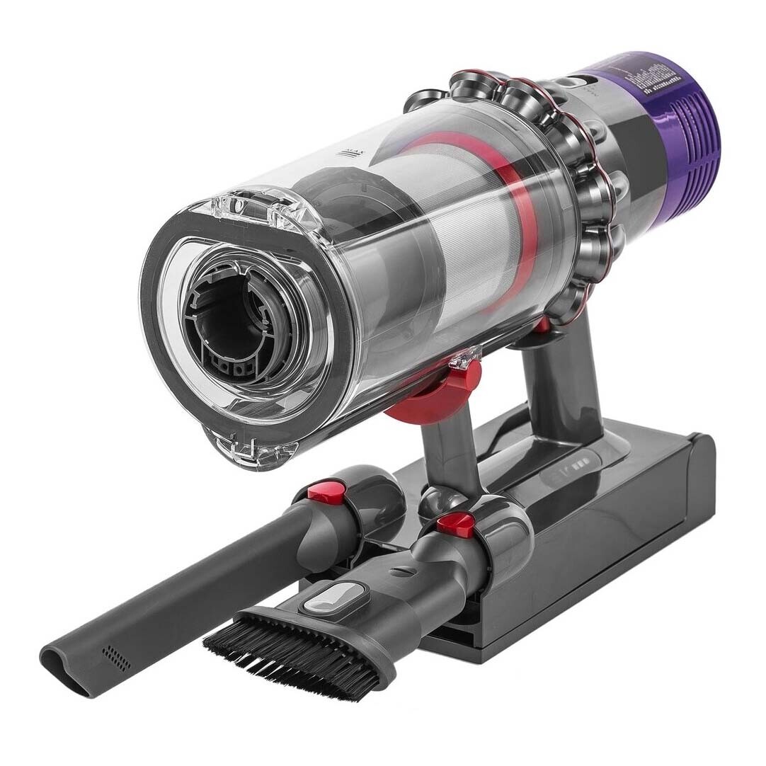 Пылесос Dyson Cyclone V10 Absolute вертикального типа предназначен для проведения сухой уборки в помещении и в салоне автомобиля, так как легко трансформируется в ручную модель путём отсоединения цельной металлической трубки. Аккумулятор ёмкостью 2600 мА*ч обеспечивает до 60 минут бесперебойной работы. О низком заряде батареи сообщит светодиодный индикатор.