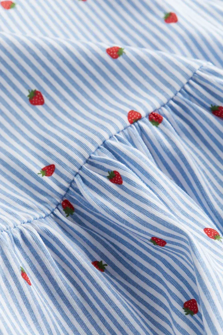 Бренд: H&M Цвет: синий Платье без рукавов из мягкого хлопкового трикотажа с присборенной кокеткой и оборками спереди, переходящими через плечи на спину. Небольшое отверстие на пуговице сзади. Расклешенная юбка. Размер: Спереди: Длина: 47,0 см (Размер 86 (12-18М)), Плечо: Ширина: 19,5 см (Размер 86 (12-18М)) Длина: До колена Рукав Длина: Без рукавов Фильм: Расклешенный, Капюшон Вырез: Круглый вырез