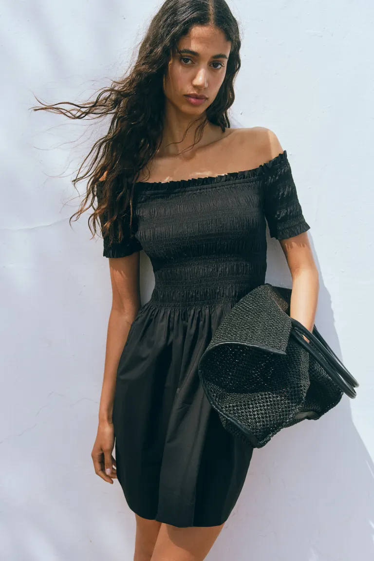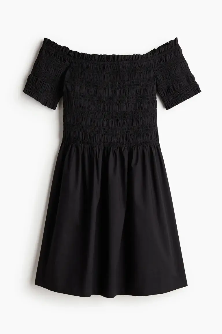 Присборенное платье с открытыми плечами H&M, черный 2 815₽