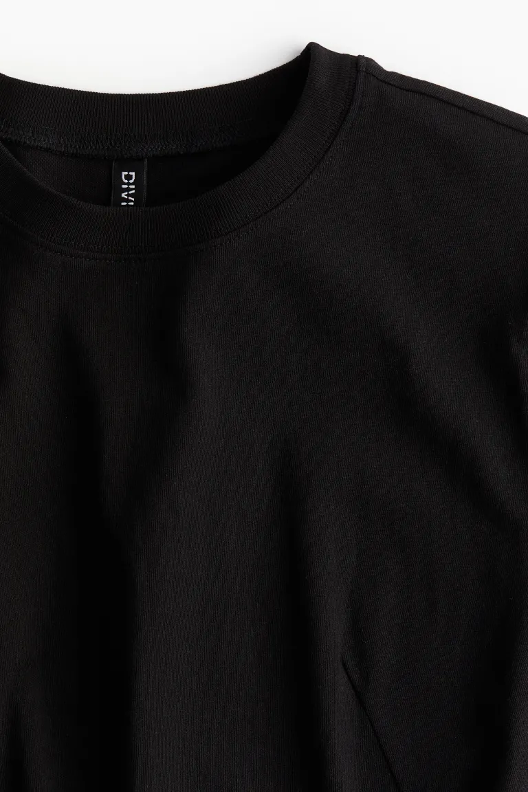 Бренд: H&M Цвет: черный Новинка Короткая футболка из мягкого хлопкового трикотажа свободного кроя. Вырез с ребристой отделкой, подплечники и прямой низ. Размер: Рукав: Длина: 29,0 см (Размер М), Плечо: Ширина: 41,5 см (Размер М), Спинка: Длина: 84,5 см (Размер М) Длина: Короткая Длина рукава: Короткий рукав Посадка: Свободный крой Стиль: Платье-футболка Вырез: Круглый вырез Концепция: РАЗДЕЛЕННАЯ