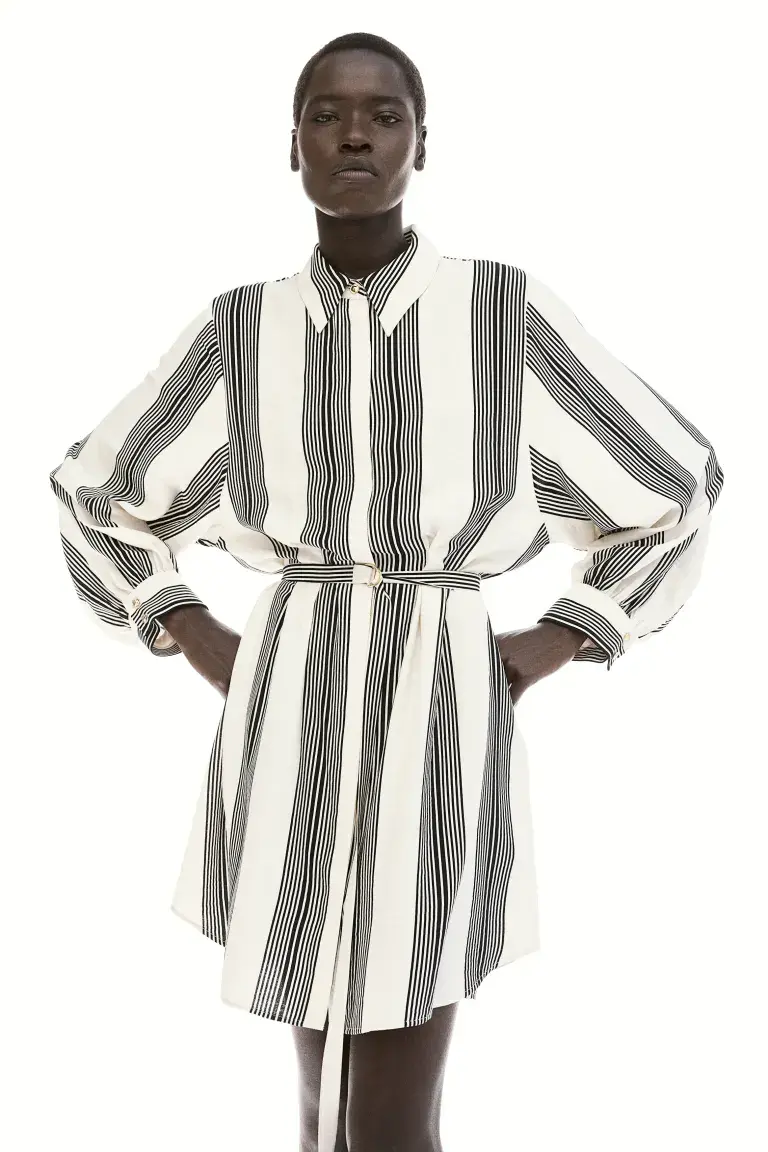 Бренд: H&M Цвет: бежевый Новинка Короткое платье из воздушной ткани с воротником и потайными пуговицами спереди. Длинные рукава-фонарики с манжетами на пуговицах, узкий пояс с металлическими D-образными кольцами и слегка закругленный низ. Без подкладки. Размер модели: рост модели 177 см/5 футов 10 дюймов, размер M. Длина: короткая Длина рукава: длинный рукав Посадка: стандартная посадка Воротник: Гимнастический пуховый воротник Стиль: платье-блузка Фильм рукава: рукава-фонарики