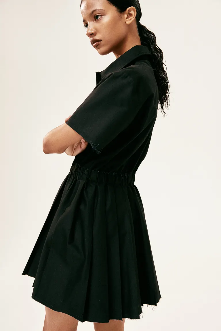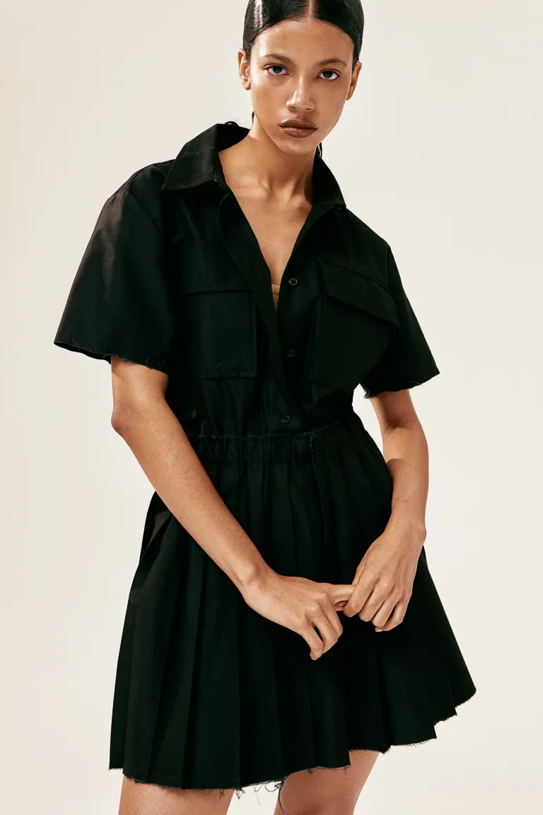 Платье в стиле милитари с плиссированной юбкой H&M, черный