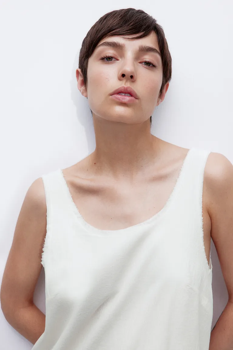 Бренд: H&M Цвет: бежевый Новинка Короткое, облегающее фигуру платье из хлопкового крепа с открытыми краями. Широкие бретели, глубокий круглый вырез и глубокая спинка. Талия на кулиске и многоярусная юбка. Частичная подкладка. Размер модели: рост модели 177 см/5 футов 10 дюймов, размер M. Размер: Спереди: Длина: 86,0 см (размер M) Длина: Короткая Рукав длина: Без рукавов Посадка: Облегающий крой Фильм: Расклешенный, Глубокая спина Вырез: Глубокий вырез, Круглый вырез Концепция: РАЗДЕЛЕННЫЙ