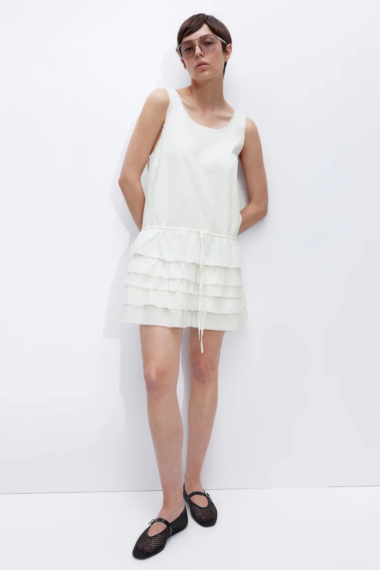 Платье с ярусной юбкой и открытыми краями H&M, бежевый