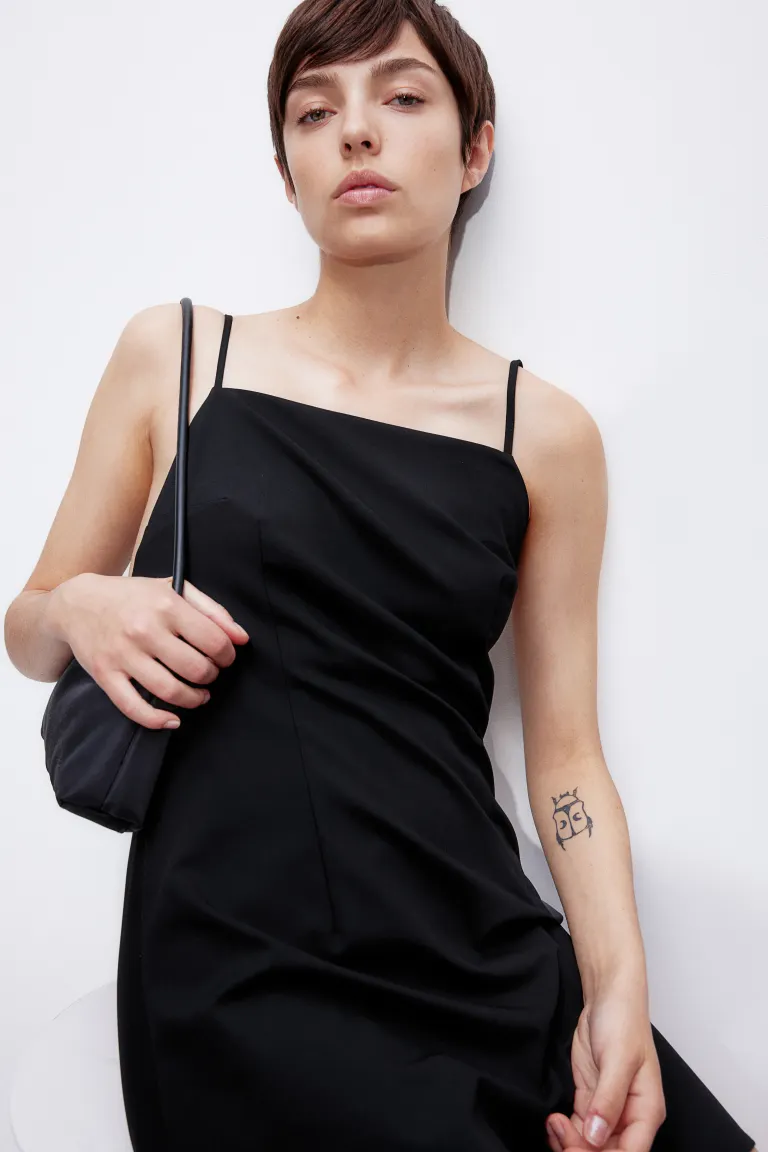 Платье на бретелях с глубоким вырезом на спине H&M, черный