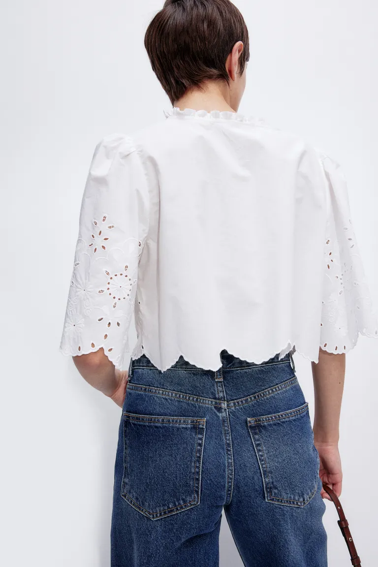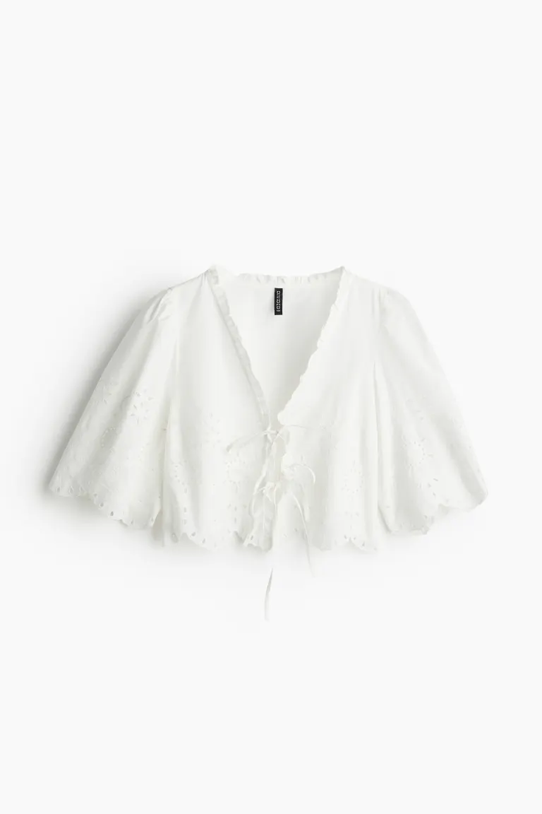 Бренд: H&M Цвет: бежевый Новинка Укороченная блузка из хлопковой ткани с английской вышивкой. V-образный вырез с оборкой, открытый перед с небольшой оборкой и двумя парами узких завязок. Короткие рукава и оверлок на манжетах и подоле. Размер модели: рост модели 177 см/5 футов 10 дюймов, размер M. Размер: Спина: Длина: 41,0 см (размер M), рукава : Длина: 37,0 см (размер M) Длина: Укороченная Длина рукава: Короткий рукав Посадка: Свободный крой Воротник: волан Фильм: завязки спереди Вырез : V-образный вырез Концепция: РАЗДЕЛЕННАЯ